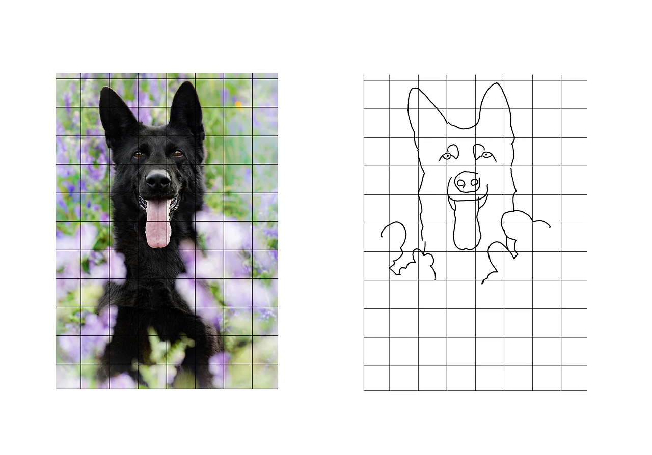 그리드(grid)는 격자 형태의 무늬를 말한다. 그림 그릴 때 ‘그리드 기법’은 형태를 그대로 그리기 위한 방법이다. 그리려는 대상의 원본 사진에 일정한 간격으로 격자를 그리고 그림 그릴 종이에도 동일하게 격자를 그린다. 원본사진의 그리드 한 칸 한 칸의 형태를 그림 종이의 같은 칸에 영역별로 그대로 따라 그리는 기법이다.