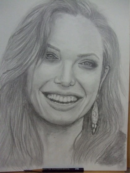 얼른 다음 그림에 ‘그리드 기법’을 적용해 보았다. 원본 사진과 그림 그릴 종이에 같은 갯수의 그리드를 연필로 연하게 선긋는다. 그리고 같은 칸의 위치에 보이는 모습을 그대로 옮겨 그린다. 그리드 기법은 어차피 격자의 비율과 개수만 맞으면 원본사진과 동일한 크기가 아니어도 괜찮다. 비율에 맞추어 키워서 스케치하면 되니까. 그렇게 나온 나의 첫 그리드 기법의 그림. 내가 좋아하는 배우 ‘안젤리나 졸리’다.