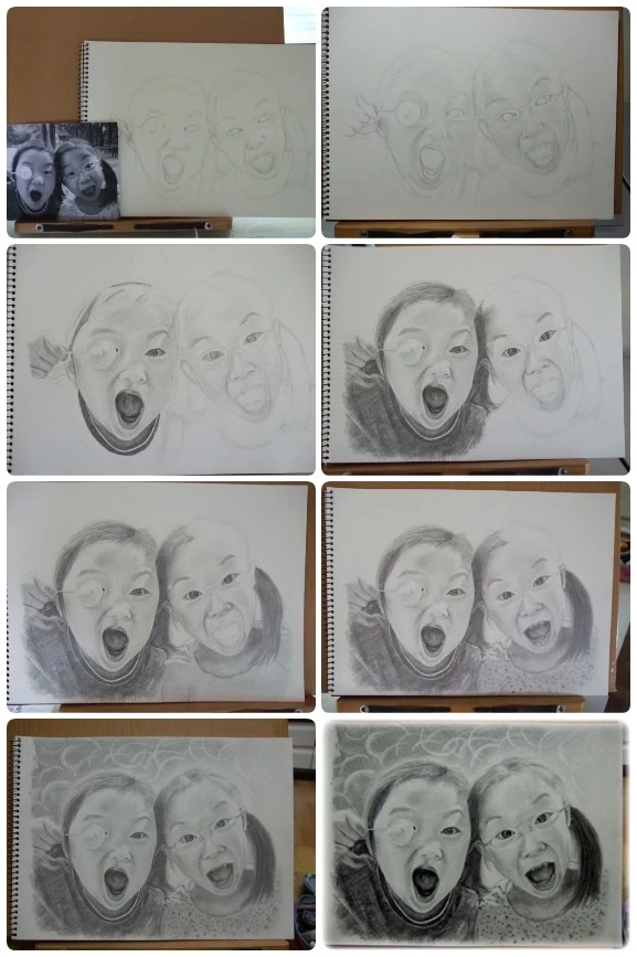 먼저 그리드로 형태를 대강 잡고 서서히 음영을 표현했다. 진한 부분도 한꺼번이 아니라 차곡차곡 연필선을 쌓았다. 그리고 문지르기로 분위기를 부드럽게 했다. 그렇게 쌓을수록 깊이감이 느껴지는 것 같았다. 그와 함께 내 실력도 느는 것 같아 기분이 좋았다.