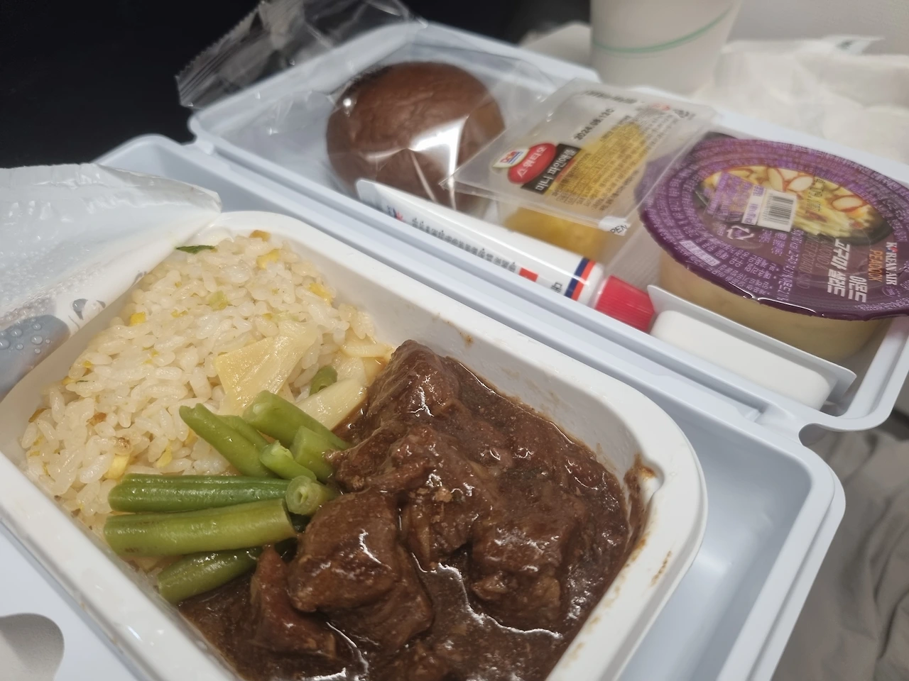 짧은 비행시간 때문인지 슬리퍼 등의 어메니티가 제공되진 않았지만 선물처럼 이어폰이 제공됐고 담요도 요청 시 제공됐다. 미남미녀 승 무원들의 친절한 접객은 언제나처럼 실망시키지 않았다. 기내식을 먹으며 예전에 저가항공을 타고 싱가포르에 갔을 때 5시간이 넘는 비행동안 쫄쫄 굶었던 추억을 이야기하며 웃었다. 4시간 고민 끝에 라면하나를 시켰는데 이미 주문가능시간이 오버되어 굶주린 상태로 한국에 도착했었다.