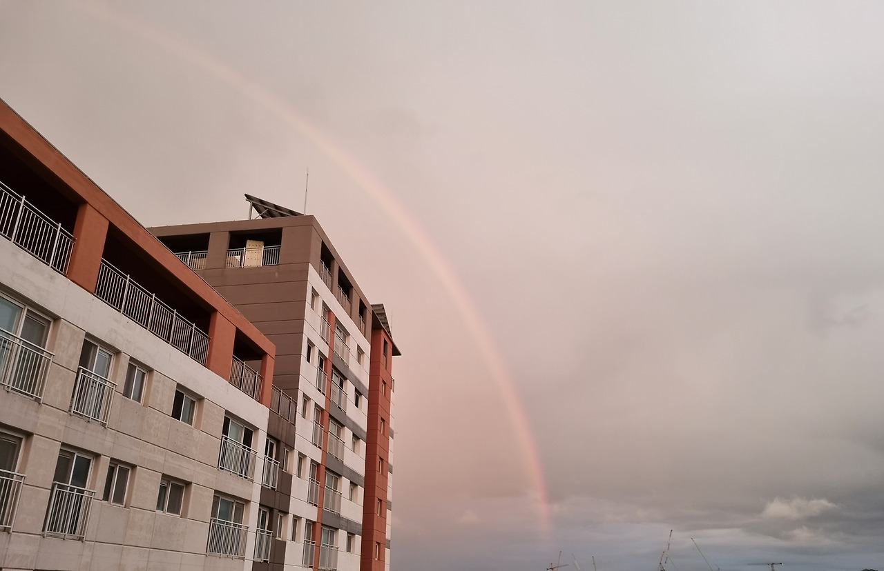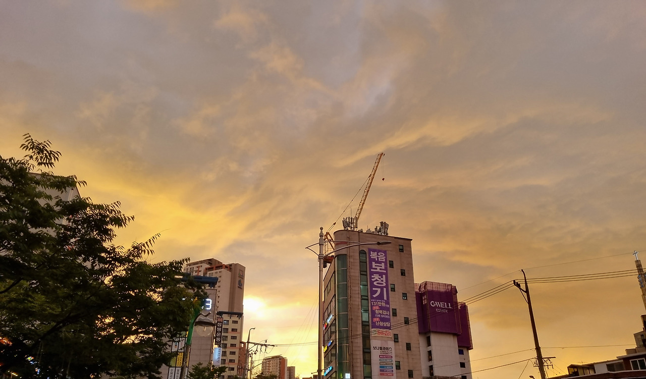 그런 생각을 하며 집에 걸어오던 길, 하루종일 오던 비가 그치고 하늘이 노란빛 보랏빛으로 물들었다. 아름답다고도, 한편으로는 기묘하다고 느껴지는 모습이었다. 어제의 본 영화의 여파인지 마치 무슨 일이 일어나기 전 하늘 같기도 하고. 그렇게 집에 도착해 보니 하늘에 무지개가 떠있다. 그것도 온전히 반원모양을 갖춘 무지개. 파란 하늘 아래 무지개 같이 아름다운 장면은 아니었지만 나는 이걸 기묘한 현 상황에 내려진 소중한 기회라고 생각하기로 했다. 그리고 그 기회가 온전히 나의 사진첩에 담긴 이상, 모든 일은 잘 될 거라고 믿기로 했다. 퇴근길 팀원들과 나눈 실마리를 향한 희망의 불씨가 꺼지지 않고 잘 될 거라는 믿음. 다시 긍정의 힘을 믿어보기로 하며 행운의 무지개를 다시 한번 열어본다.