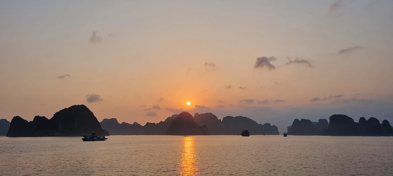 항구로 돌아오는 길 붉은 노을빛도 정말 정말 아름다웠다. 음식이나 음악은 없었지만 노을빛은 아름다웠고 하롱베이의 작은 섬들 사이사이를 지나는 풍경을 배경으로 삼삼오오 모여 이야기를 나누는 사람들의 모습을 상상해 보라. 선상파티가 이런 게 아니면 무엇일까 생각이 들었다.