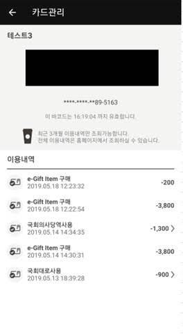 - 바코드 : 선불카드의 바코드로 회원 식별 및 카드 선수금 지불, 별 지급