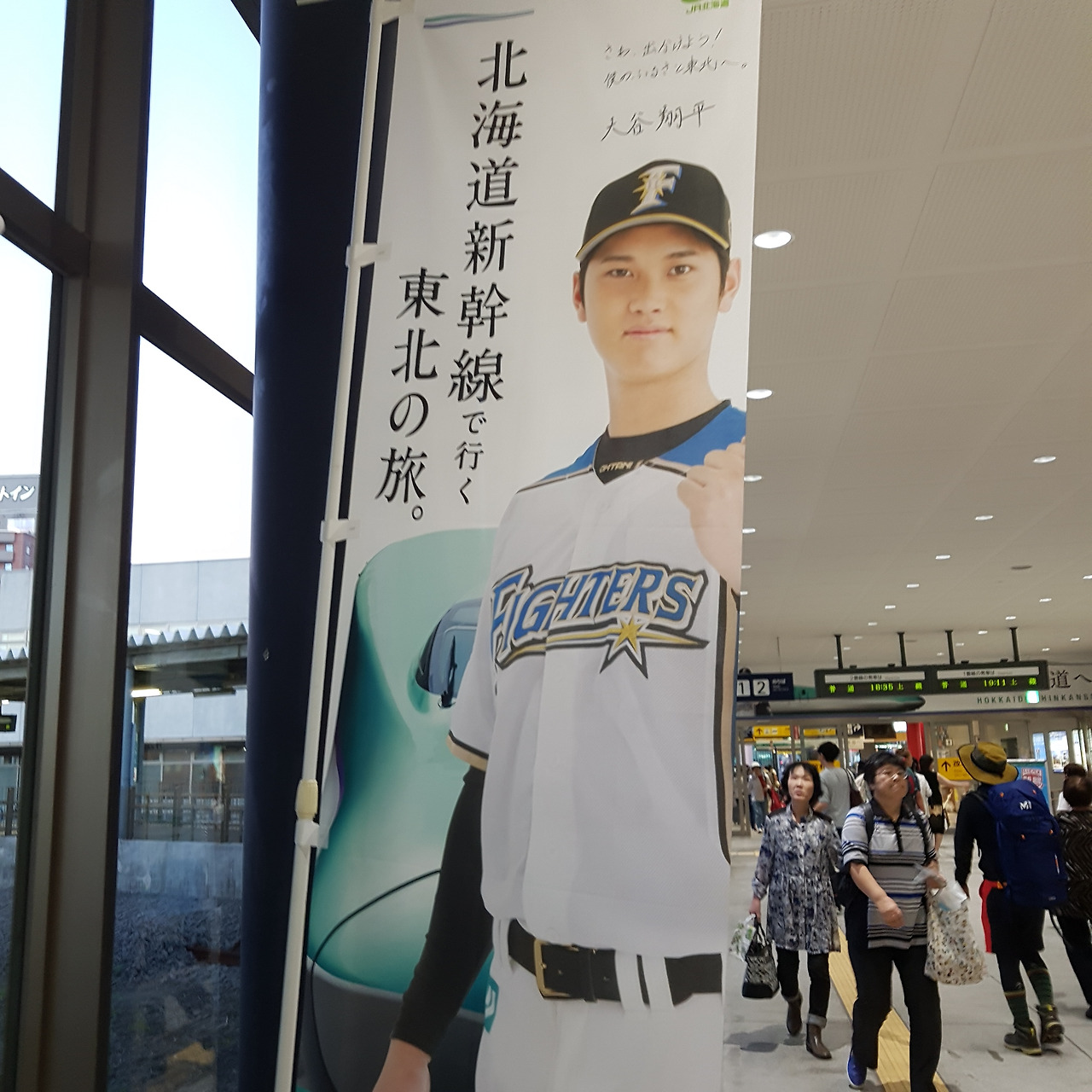 하코다테역에서 가장 처음 마주하는 광경은 니혼햄 파이터즈의 오타니 료헤이입니다. 니혼햄은 삿포로를 연고로하는 프로야구구단입니다. 프리미어12에서였나요, 오타니가 7이닝까지 한국 타자들을 꽁꽁 묶었다가 오타니 교체이후 오재원을 시작으로 일본에게 복수의 폭격을 내리꽂은 기억이 있다면 다들 기억하시겠죠.