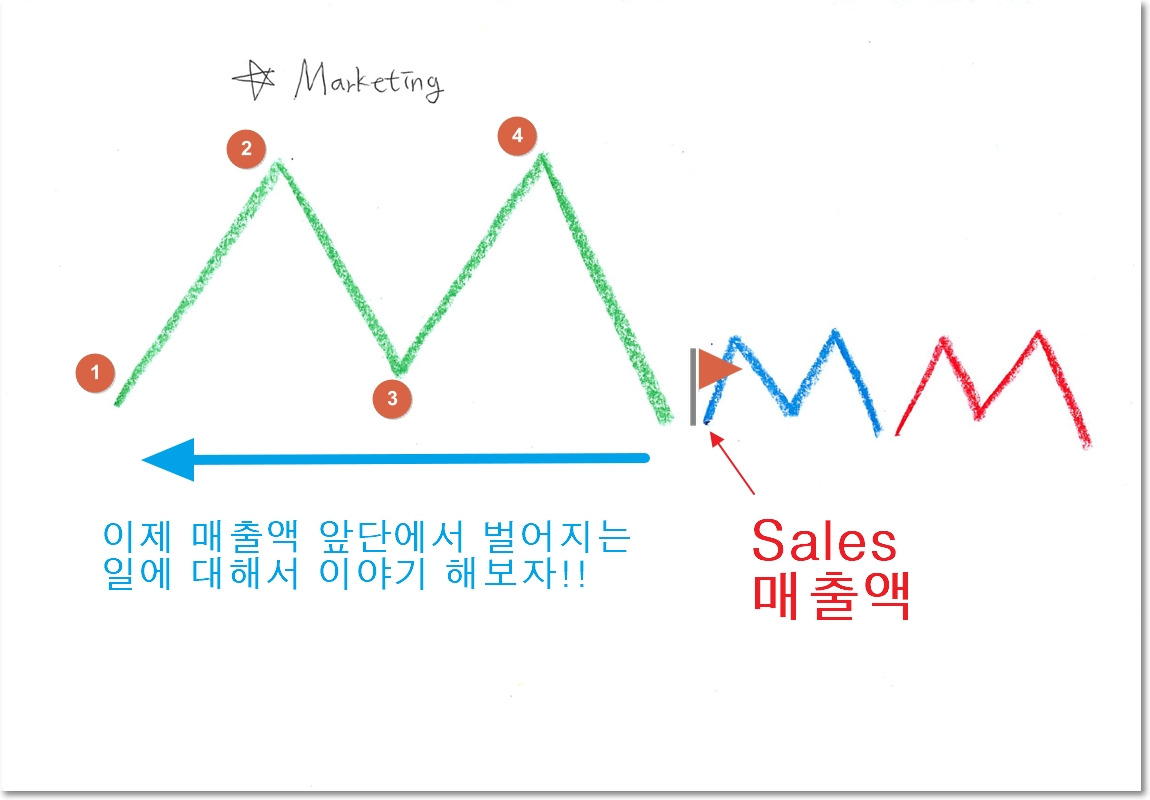 매출에 관한 일반적인 이야기는 다른 책에 맡기고, "돈 버는 회계"에서는 매출이 어떠한 구성요소로 이루어져 있는지 "숫자" 측면에서 살펴보고자 한다. 이를 통해, 매출이 100억 원 발생하기 위해서는 어떠한 요소들이 결합이 되어야 하는지를 알 수 있을 것이다. 그것이 바로 3M 중 가장 앞 단에 위치한 "마케팅 Marketing M"이다. 어떠한 사업에서건 매출이 발생하기 위해서는 크게 4가지 선행 단계가 필요하다. 이 중에서 하나라도 소홀히 해서는 안된다. 이른바 매출을 만드는 공식이다.