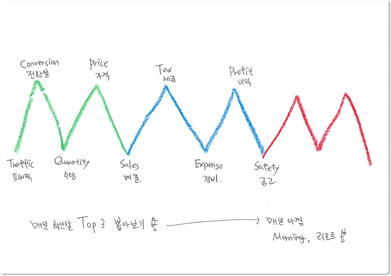 이제 드디어 "돈 버는 회계"의 마지막 섹션인 "Morning M"을 소개할 차례이다. 지금까지의 내용보다 훨씬 간단하니, 이제 팔부능선은 넘었다고 생각하면 된다. 이번 장에서 강조하는 내용은 "매일 보는 숫자의 힘"이다. 앞으로 내 사업의 핵심 숫자는 늘 옆에 끼고 살아야 한다. 그래야 계속 성공할 수 있다!