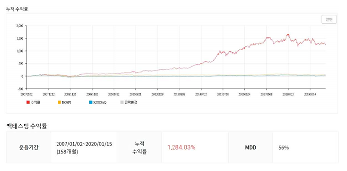 한국 주식시장이 매우 안 좋았던 13년 동안에도 이 정도 수익률을 유지할 수 있는 전략이다 보니 이보다 낮은 수익을 얻을 확률은 매우 낮다 볼 수 있습니다.