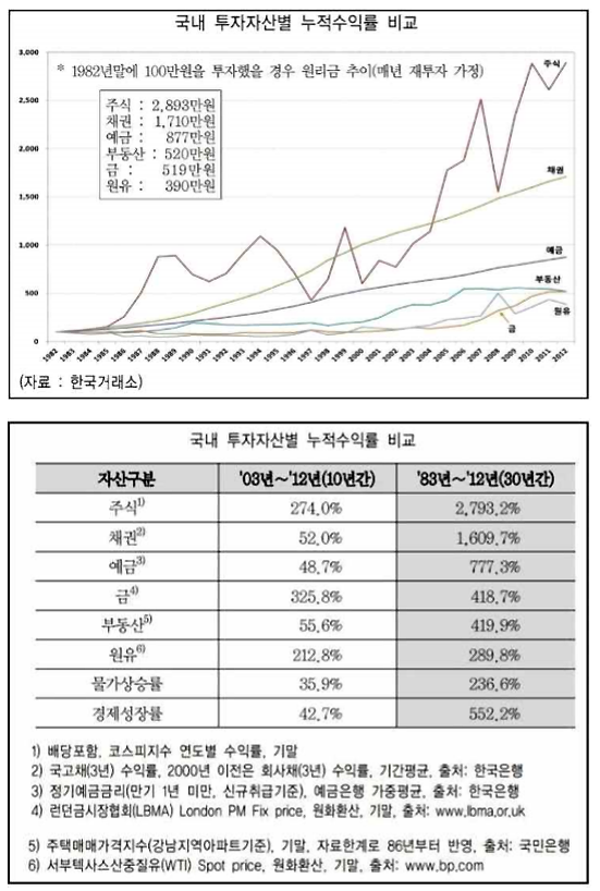 그럼에도 불구하고 가장 높은 수익률은 역시 주식과 채권임을 알 수 있습니다.