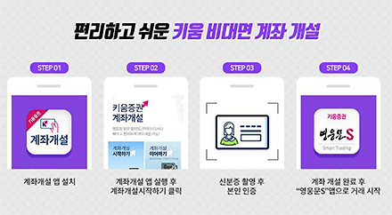 절차는 간단합니다. 계좌 개설 앱을 설치하고 본인 확인 절차를 거친 뒤 영웅문S(거래앱)를 설치해서 로그인하면 됩니다.