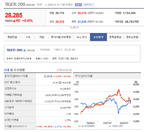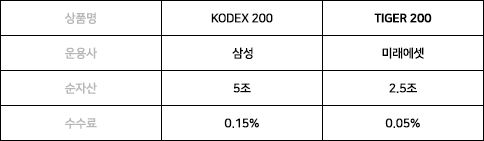 따라서 수수료가 가장 저렴한 TIGER200을 개인적으로 추천드립니다.