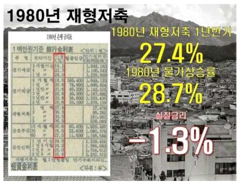 하지만 앞서 얘기한 내용들을 다시 짚어보겠습니다. 물가상승률은 곧 화폐가 하락할 것임을 중점으로 본다면 1980년 물가상승률의 경우 무려 28.7%였습니다. 그렇다면 은행에 예금해두고 돈이 늘어난 게 실제로는 내가 돈을 번 게 아니라는 증거이지요. 조금 더 쉽게 설명해서 짜장면이 천 원인데 제가 은행에 천 원을 예금해두고 내년에 짜장면을 먹으러 가면 그때는 짜장면 가격이 1287원이 되었을 것이고 제 돈은 1,274원이 되어 있으므로 13원이 모자라 결국 짜장면을 못 사 먹게 되는 것입니다.(심지어 이자세를 적용한 것도 아닌 세전 계산임에도 부족합니다)