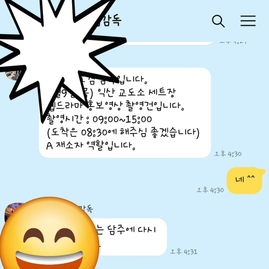 집으로 돌아오는 길에 문득 생각했다. 긴장은 왜 하는 것일까? 단지 카메라 앞에서 내가 준비한 연기를 하는 건데 틀릴까 봐 두려운 것일까? 아니면 나의 실력을 평가받는 것 같아 걱정되는 것일까? 아마 촬영현장마다 다르겠지만 차차 익숙해지는 것만이 답일 거라 생각한다.