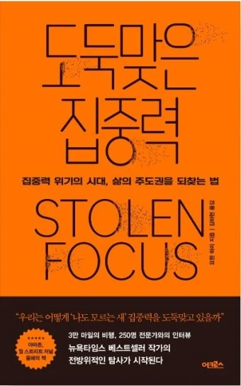 집중력 부족을 개인 탓, 도파민 탓이라고 생각했던 통념에서 깨어나 사회 시스템의 문제를 인식하자는 제안을 던진 책 《도둑맞은 집중력》