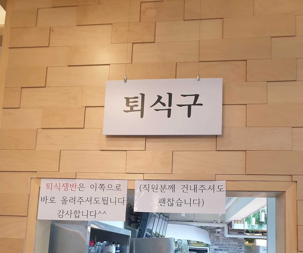 - (보기만 해도 마음이 너그러워지고 기분이 좋아지는) 너무나도 대조되는 어느 베이커리의 퇴식구 문구