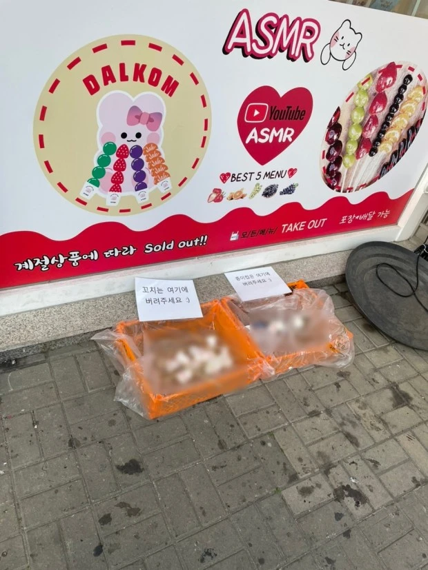 요즘 탕후루가 난리더라고요. 어디든지 불나방처럼 많은 인파들이 있던데 (물론 아닌곳도 넘쳐납니다.) 저렇게 자기 매장앞에 쓰레기 버리도록 놔둬도 설탕으로 인한 벌레 등 각종 문제가 된다고 기사가 나올 정도인데,