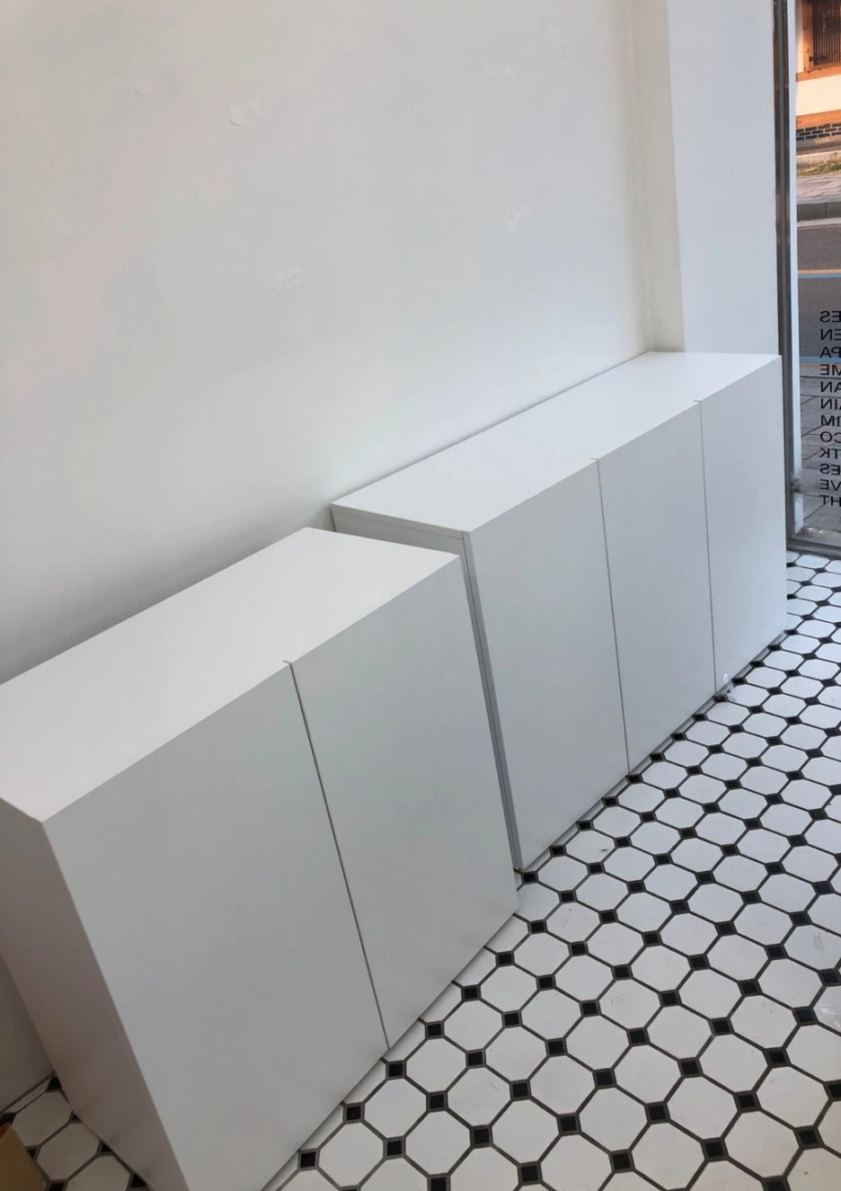 매장은 5평이었고 우리는 가맹점의 도움을 받는 프랜차이즈 업장이 아니었기 때문에 모든 것을 다 알아서 준비해 나갔다. 빈 벽에는 미리 측정해 둔 평면도를 가지고 벽면에 붙일 타공판과 상품을 진열할 가구들, 카운터장, 금고 등 모두 발주하여 미리 대기 중이었다. 우리가 판매할 상품 역시 집에서 차로 옮겨서 준비가 되면 매장에 깔아 둘 준비가 되었다. 매장 커튼을 달기 위해 레일을 달고 벽면 타공판을 붙이고 카운터장과 진열장들을 하나씩 매장에 들이면서 그 형태를 갖춰가고 있었다. 그리고 밖에 우리 매장을 알리는 시트지도 붙였다. (여담이지만 붙이는 시간대가 오후 네시~다섯 시 사이였는데 선거로 휴일이라 그런지 길에 다니는 인파가 많았다.)