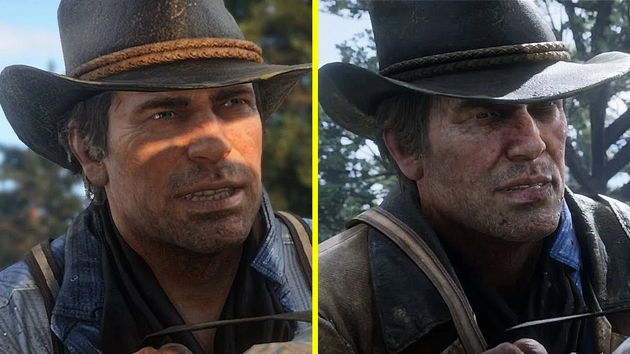 레드데드리뎀션2에서 왼쪽(트레일러) 오른쪽(실제 게임)