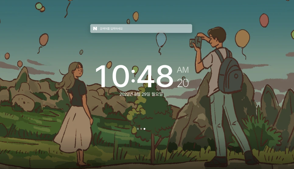 사진과 이야기 속에는 함께 웃고 떠들고 장난치던 우리가 살고 있다. 네이버 웨일을 켜니, 배경 화면에 우리 부부의 모습처럼 사진을 찍어주는 남자와 밝은 미소 짓는 여자가 나타난다.