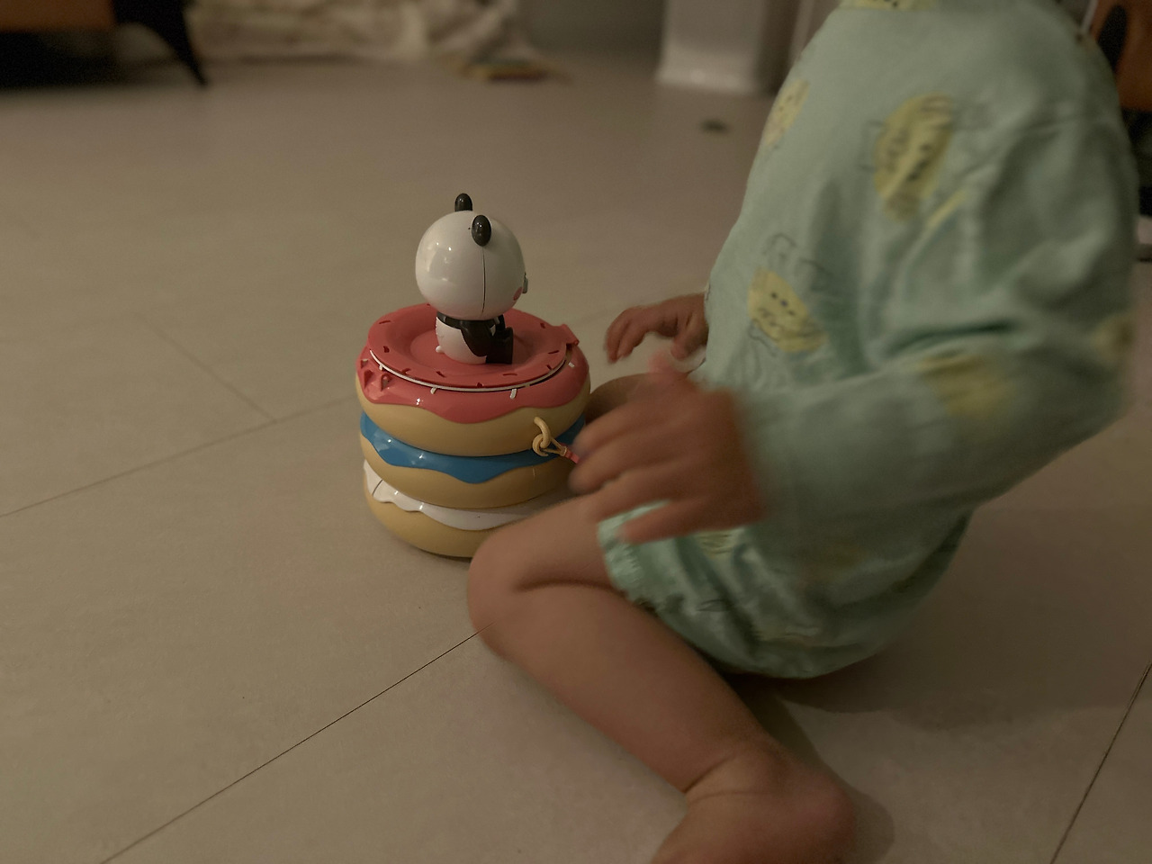 “울 아기 많이 놀라또?” 스스로 엄마인 척 연기 선보이는 아들 덕분에 밤 12시는 숙연한 함박웃음이 장식했다.