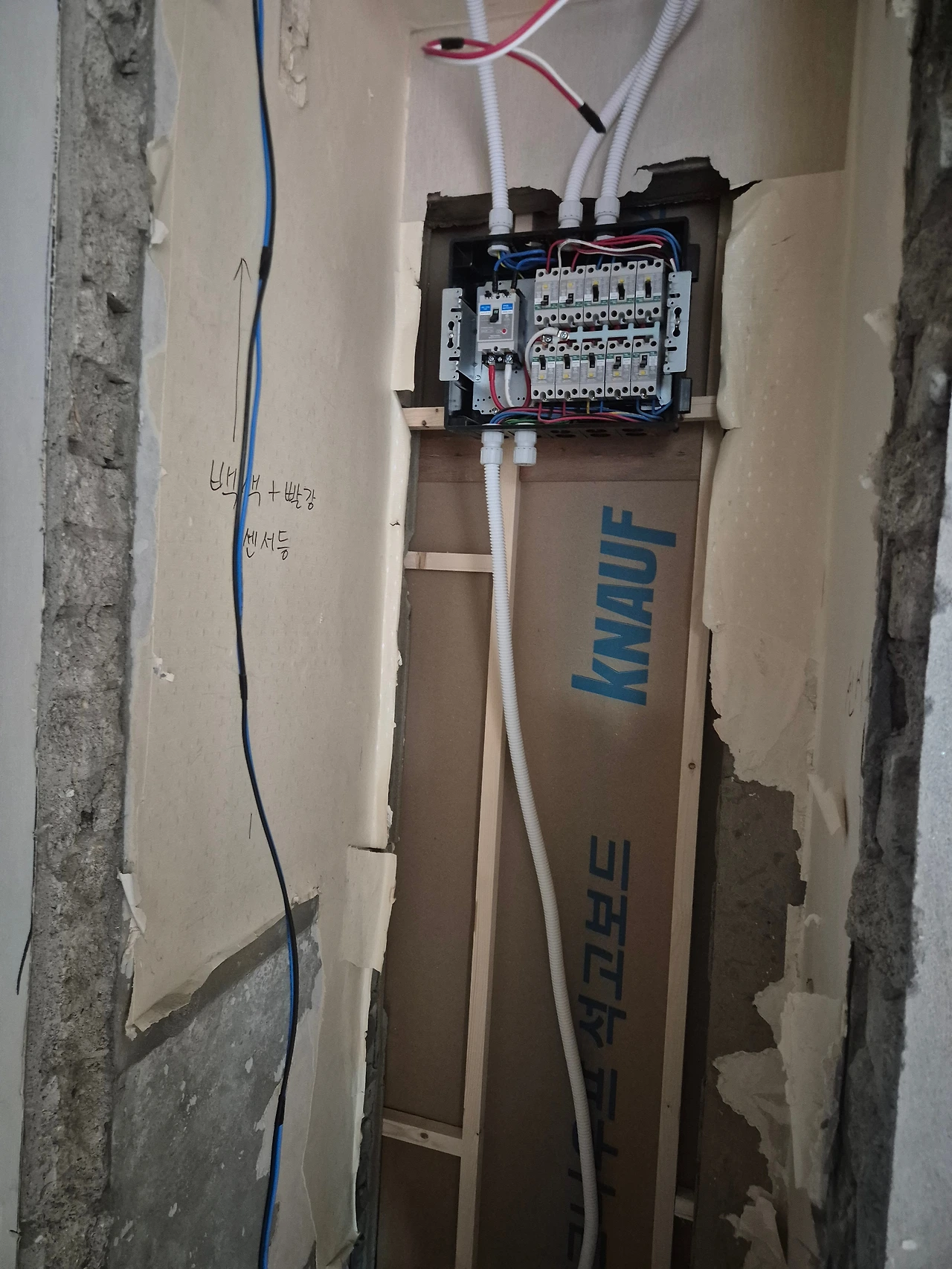 이 작업을 해주지 않으시면, 전기 타공 후 설치할때 선을 찾는라 진을 빼게 된다.