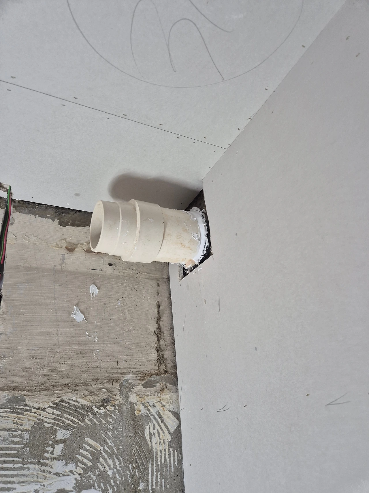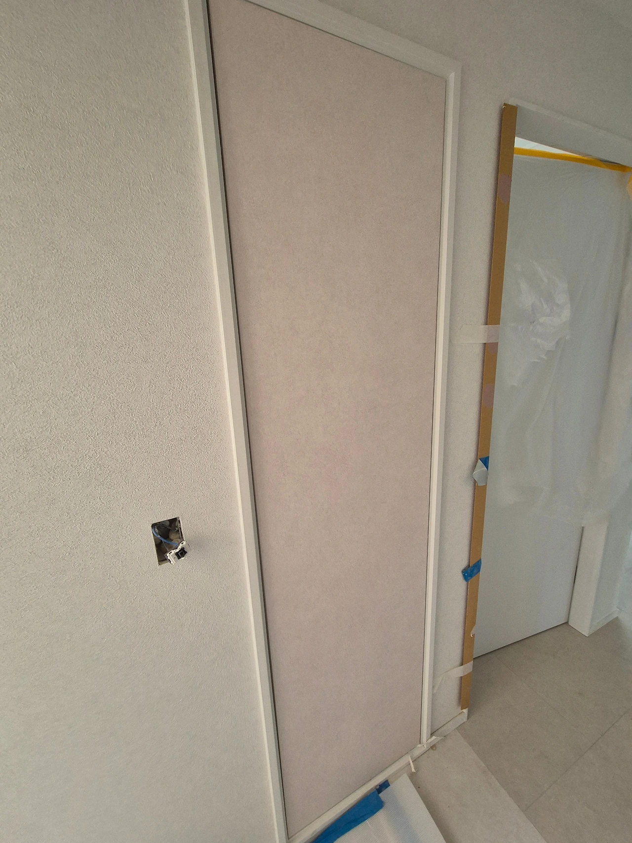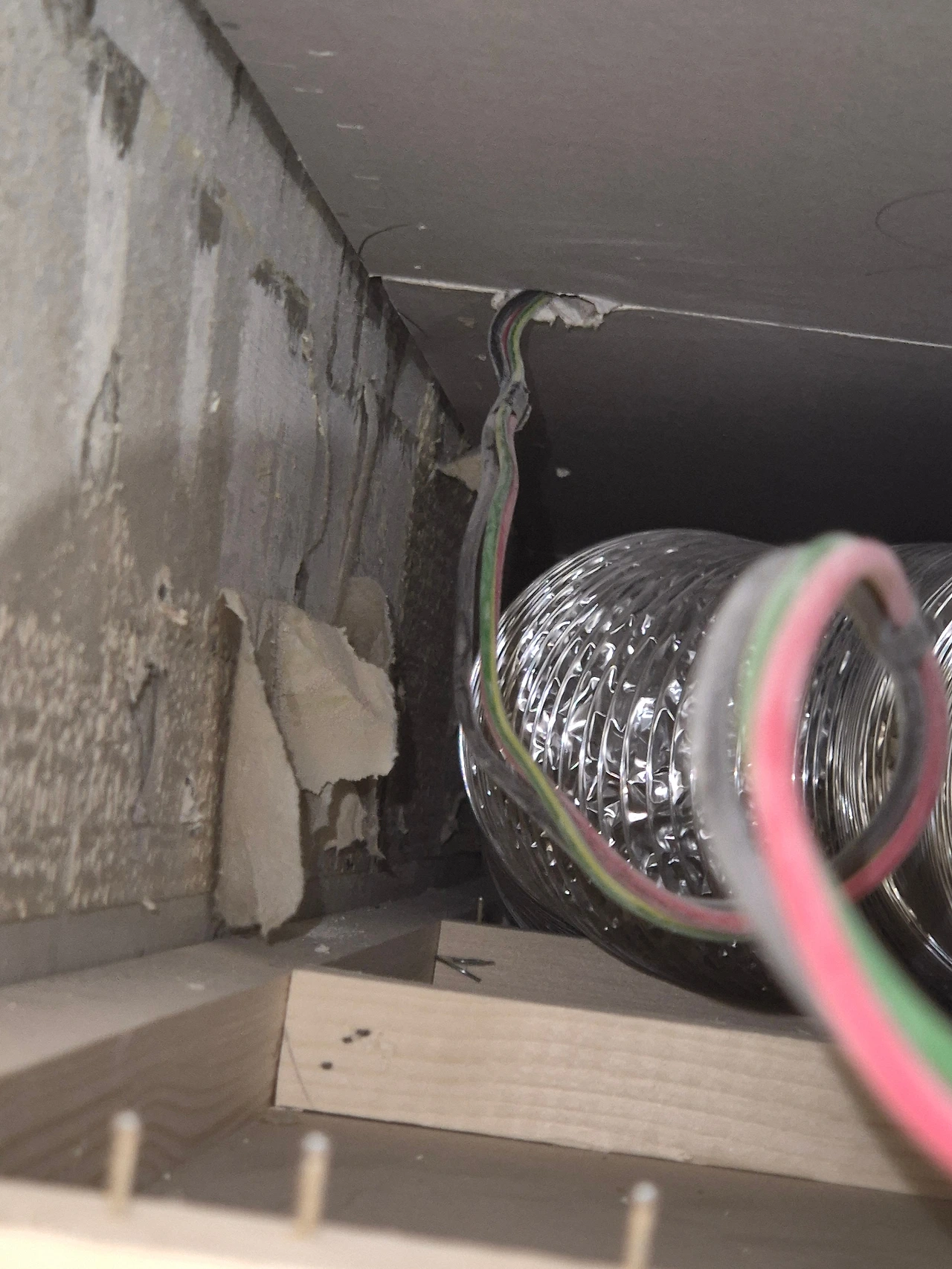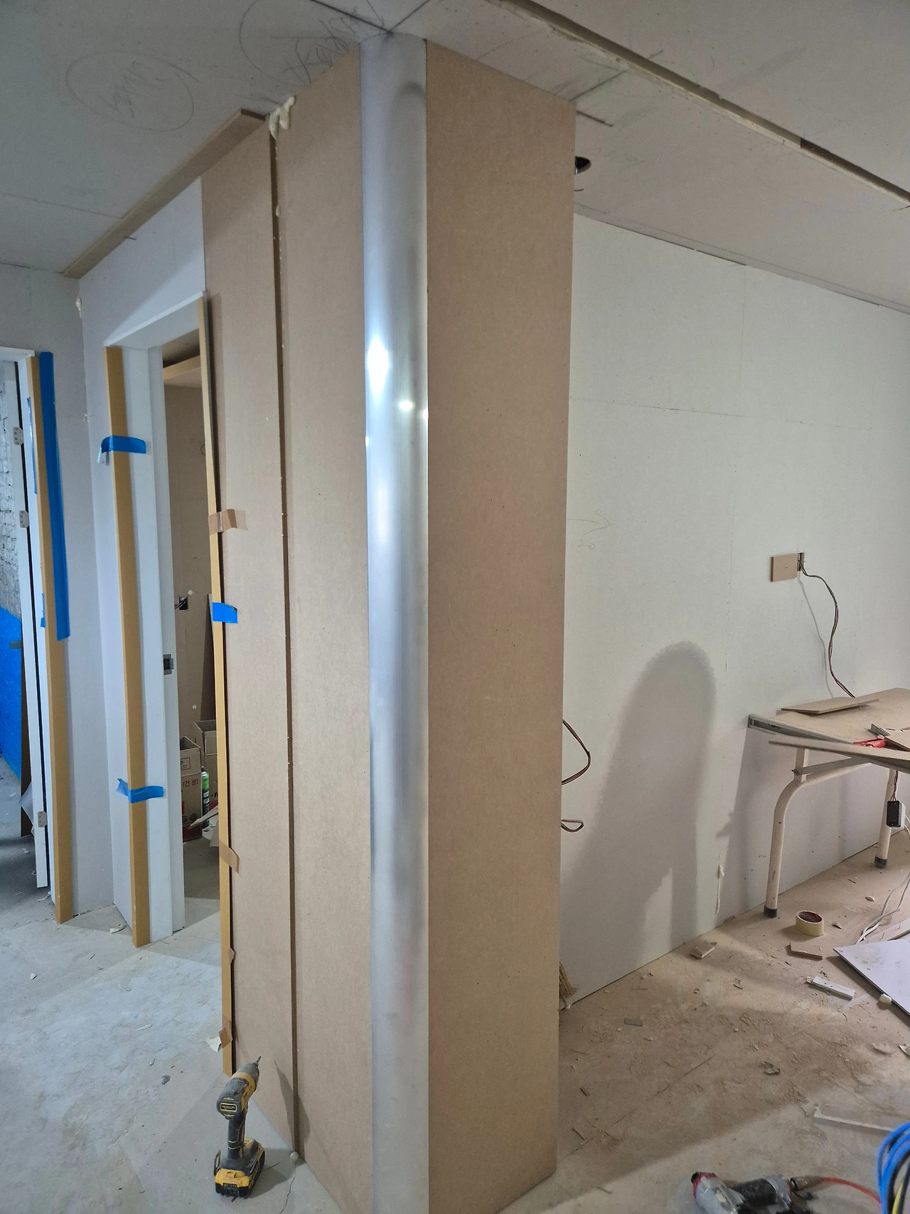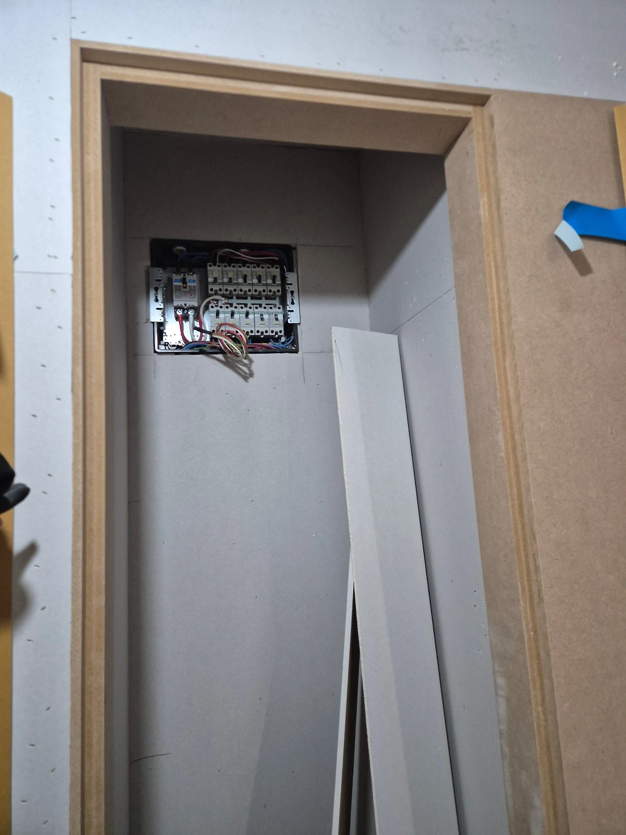단열 후, 석고보드 마감. 에어컨 박스가 만들어진 모습.