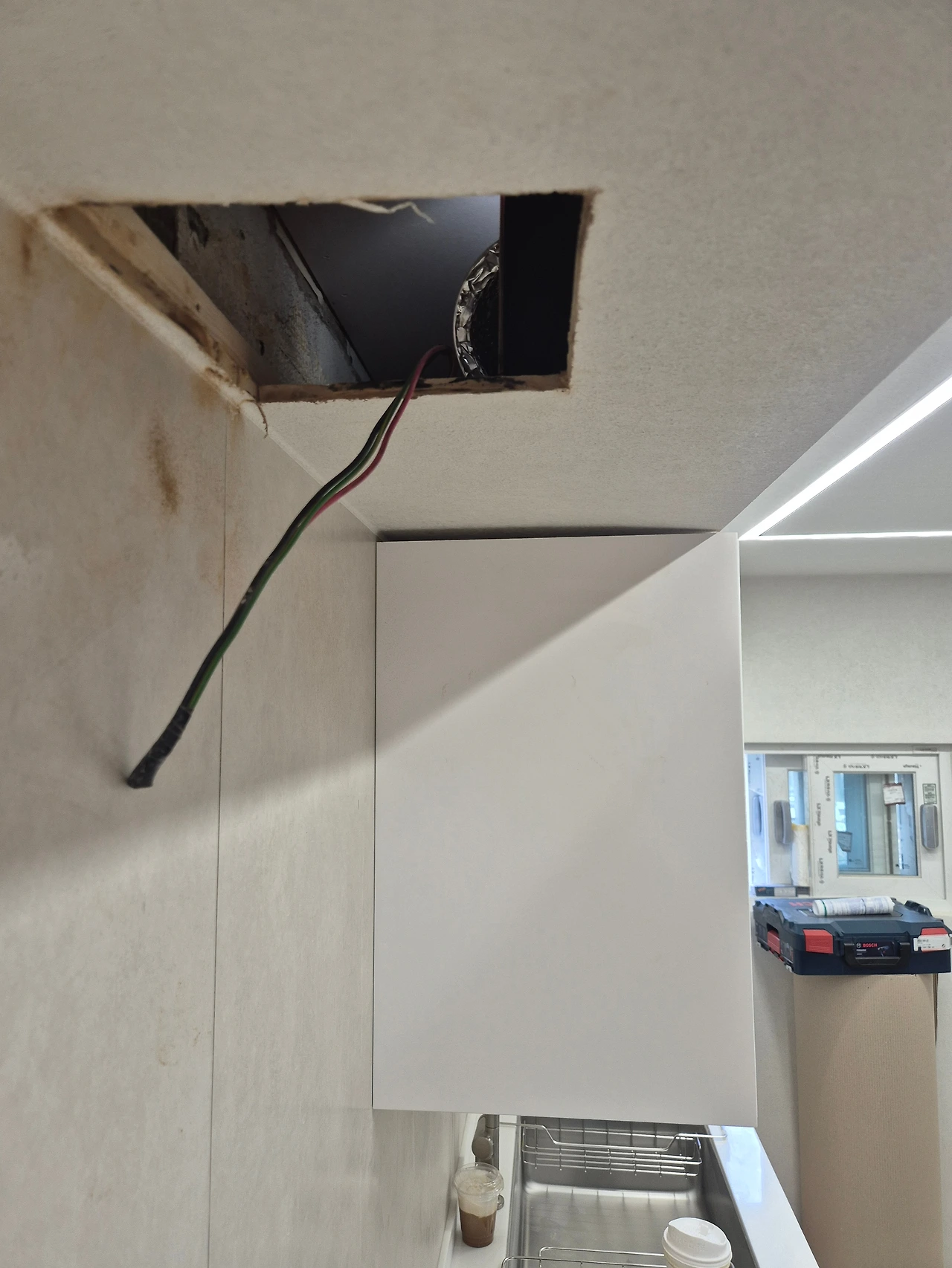 이 실수 때문에 주방후드 기사가 설치 거절 후 돌아갔지만... 읍소하여 타공을 대신해주셨다.