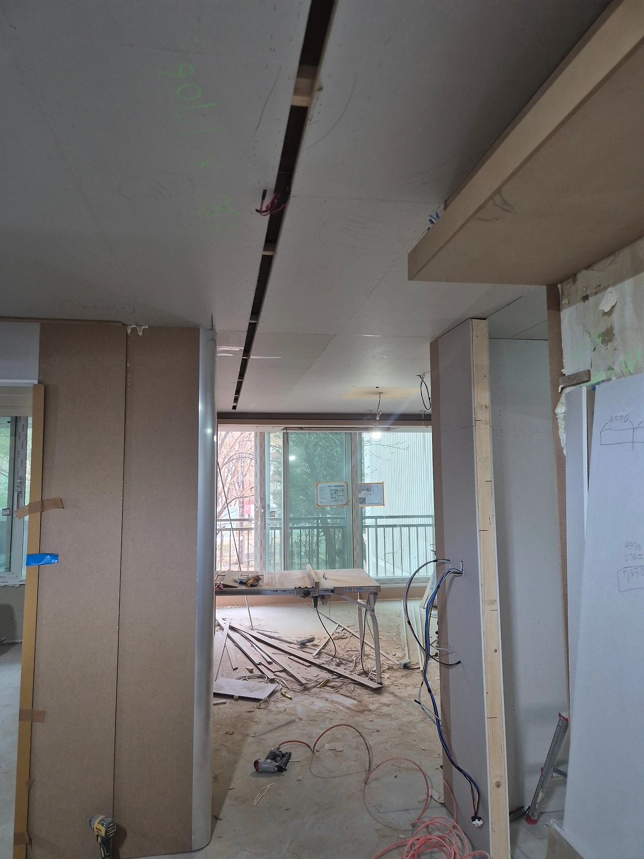 거실에서 짧았던 옆면의 벽을 연장해서 TV 선 및 인터넷 선을 옮겨두었다.