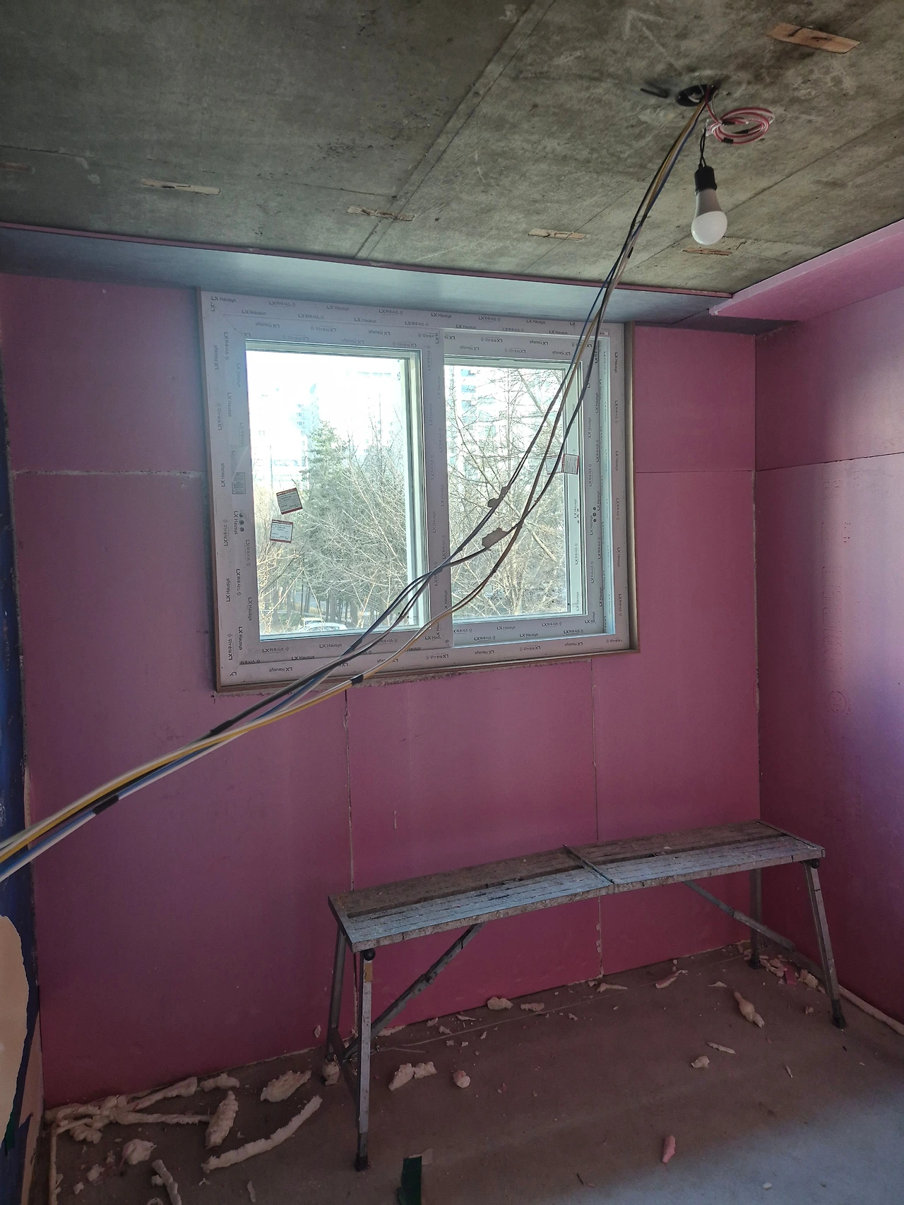 외벽과 맞닿는 벽은 아이소 핑크로 단열하는 모습이다.