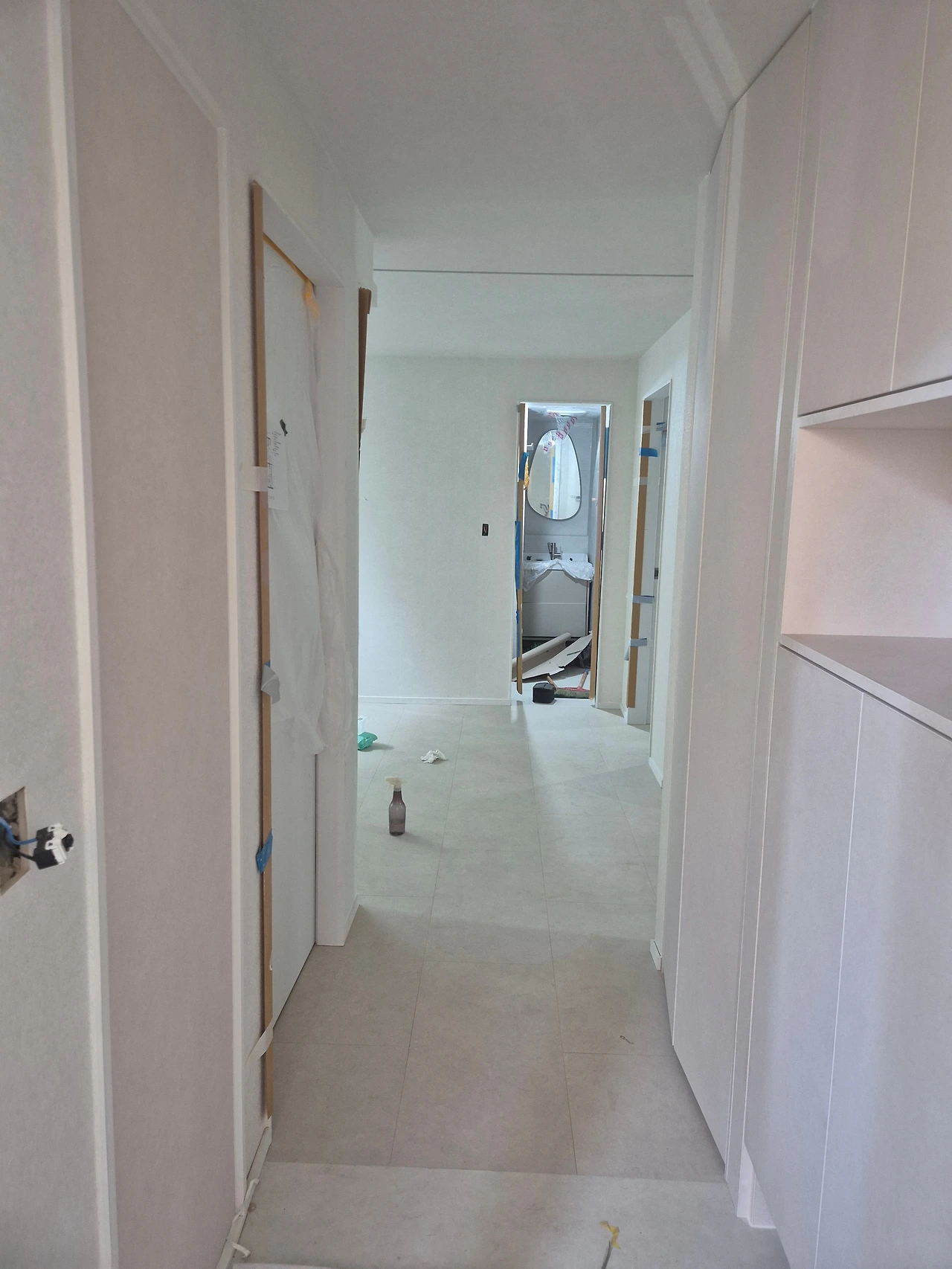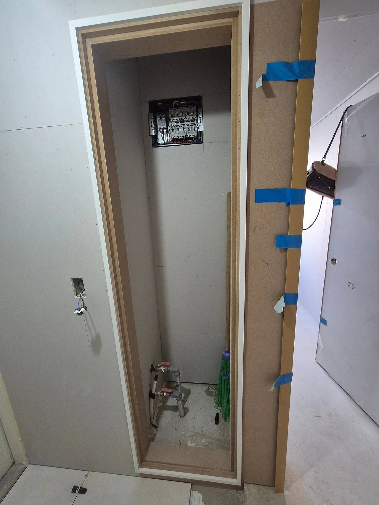 중문도 할 예정이었기 때문에 중문업체에 미리 문의하여 어느 정도 벽이 확보되어야 하는지 알아보고 7센티 정도 자리를 띄워놓고 팬트리를 짰다.
