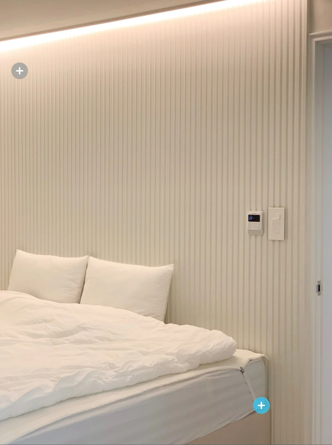 우리 집의 포인트 안방 가벽이다. 안방 가벽은 천장 단내림과 연결되며, 단내림은 방 중앙을 모두 내렸다.