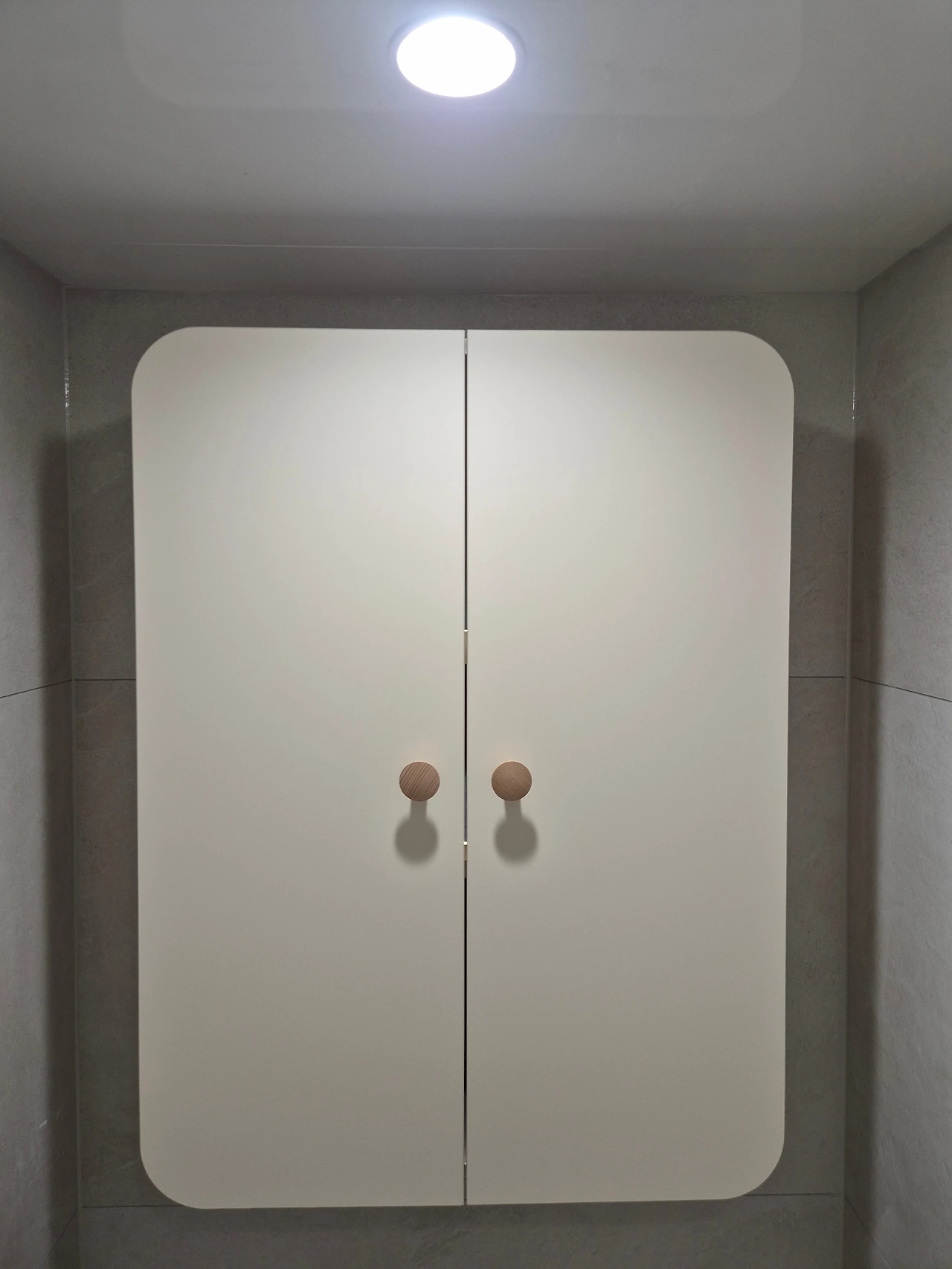 벽장은 웬만하면 안 하고 싶었는데 부족한 수납 때문에 어쩔 수 없이 변기 위에 붙였다.