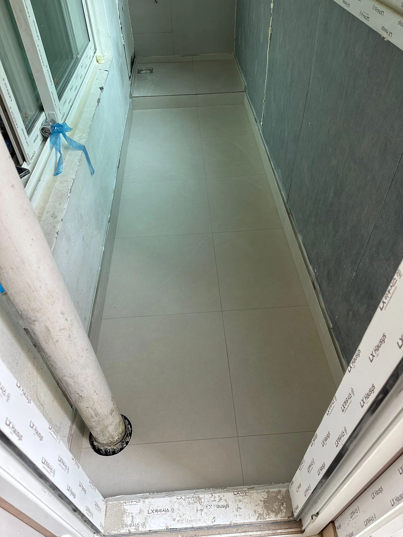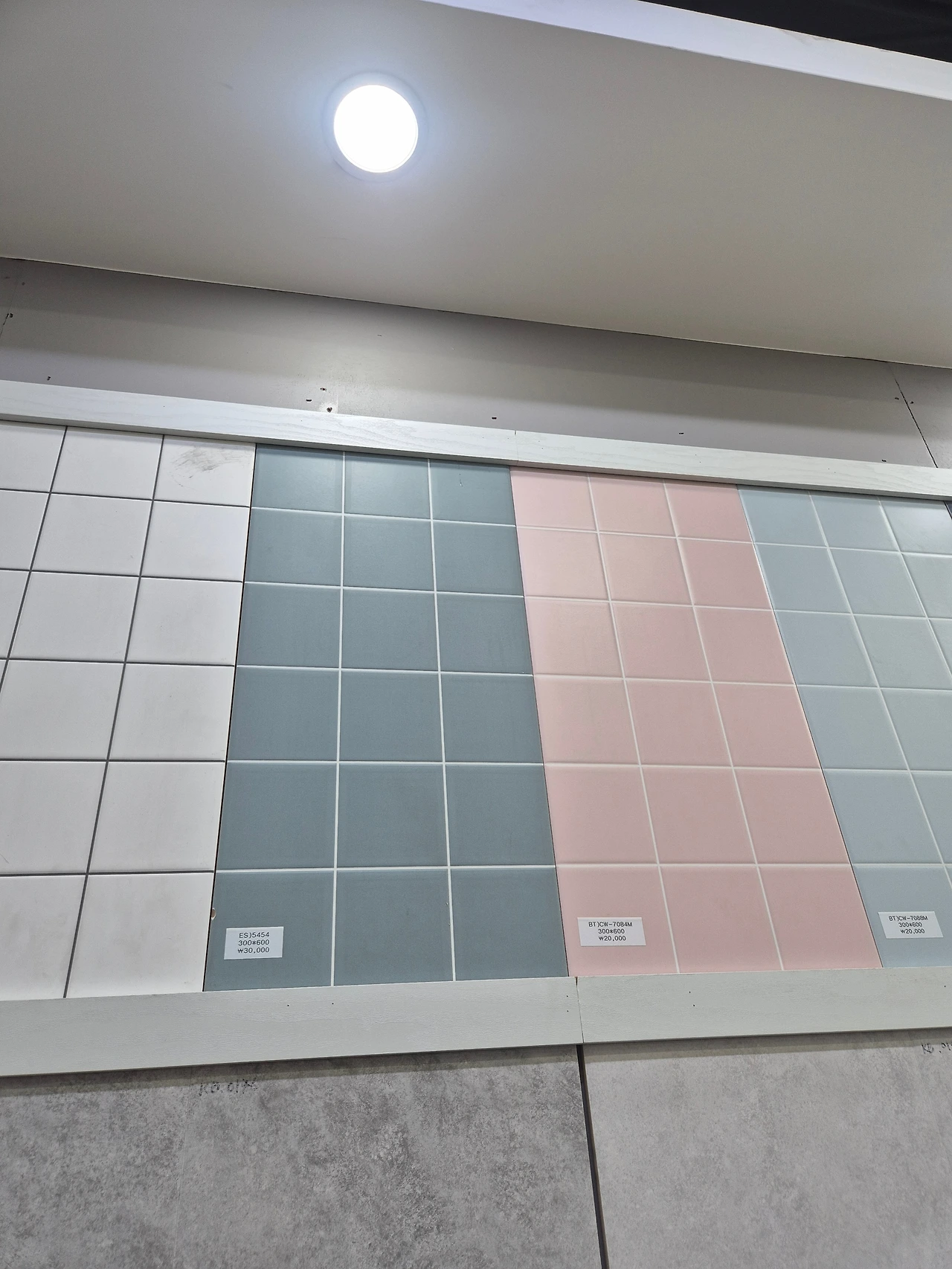 주방과 현관은 1200x600으로 큰 타일을 붙였고, 나머지는 600x600으로 결정.
