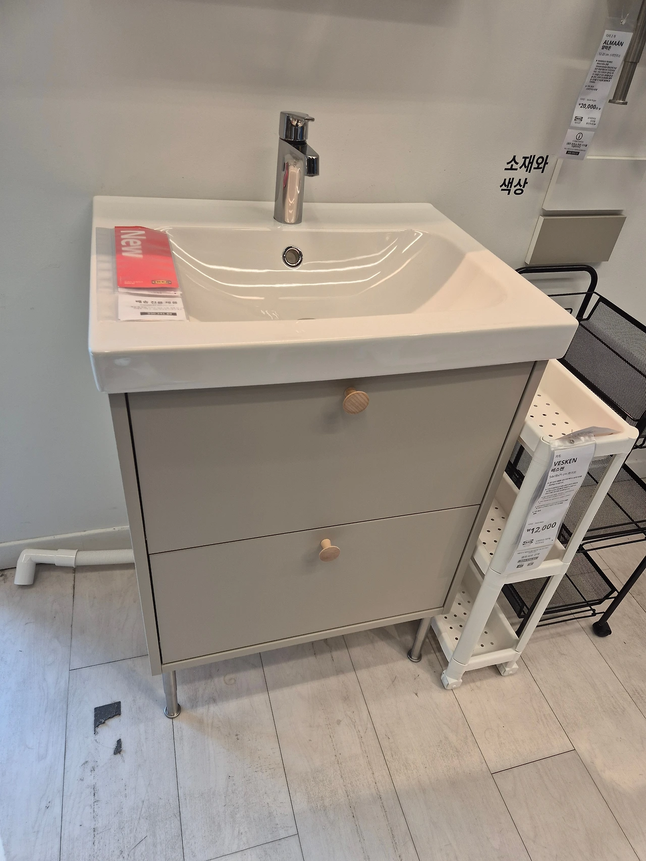 세면대는 이케아 스타일이 너무 예뻐서 서랍장과 함께 세면대를 구매했다.