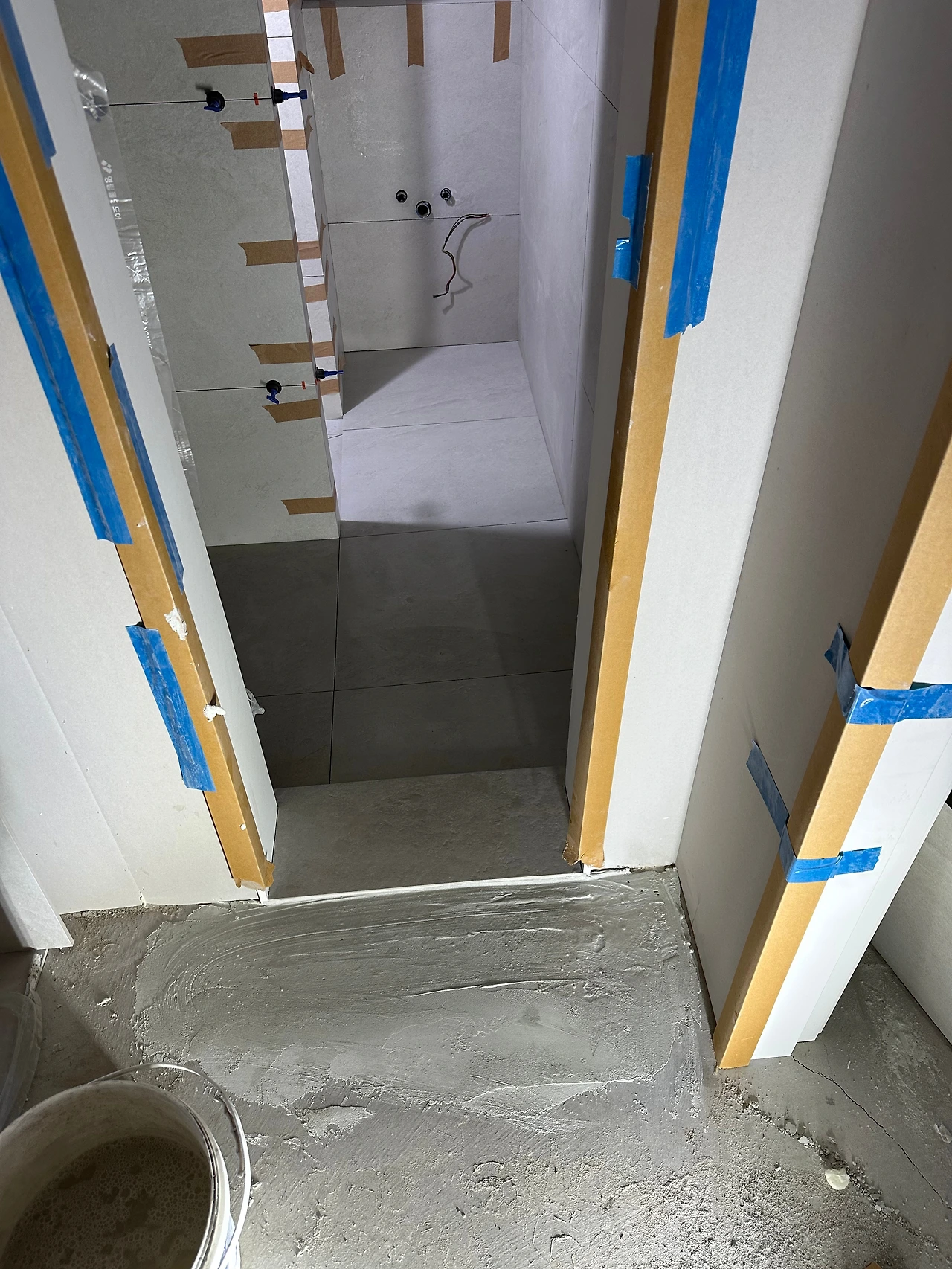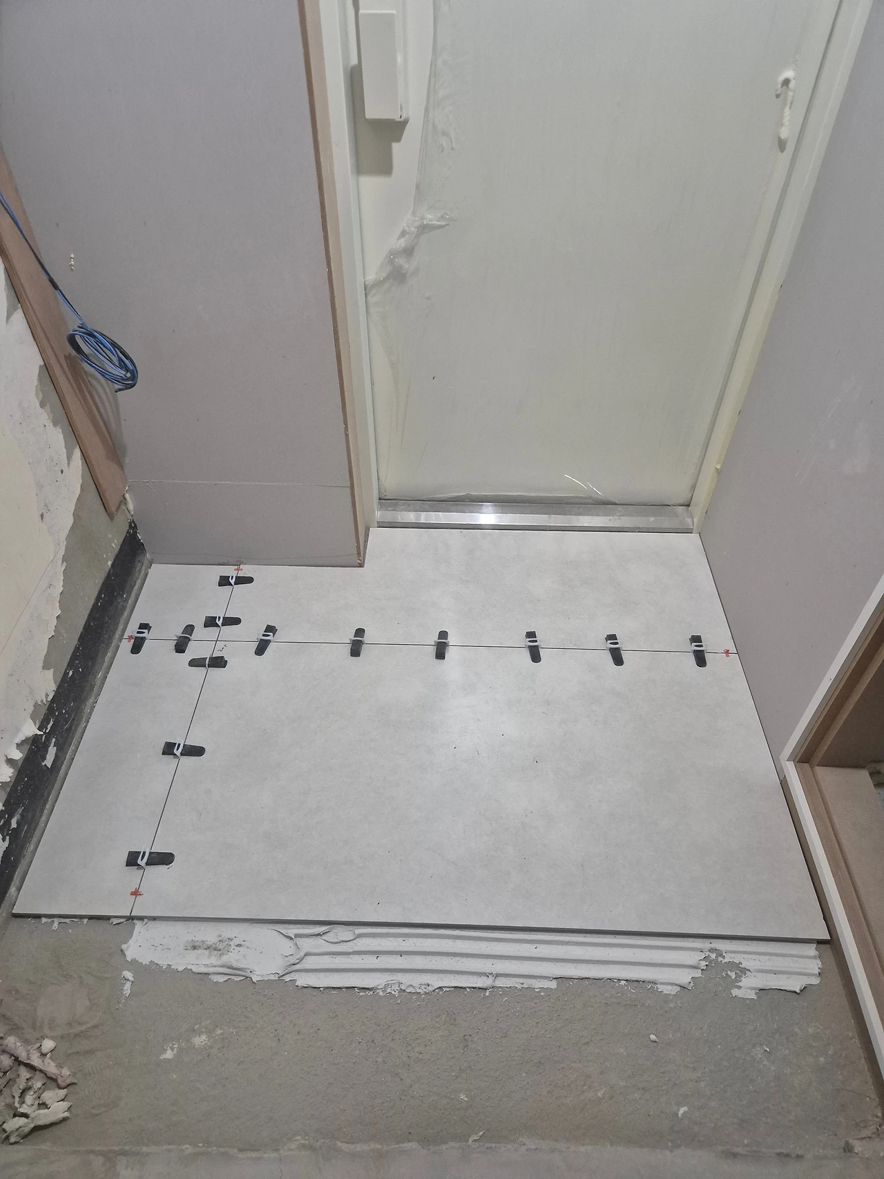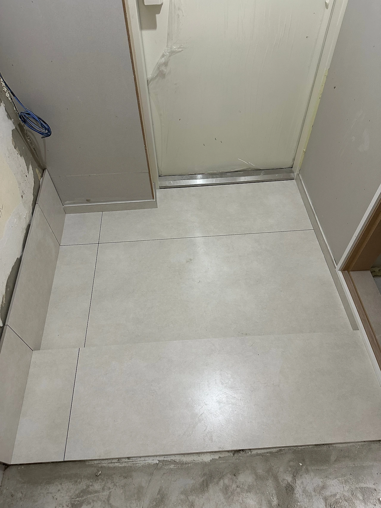 현관도 주방과 동일하게. 1200으로 하니 깔끔하고 예쁘다. 분절선 쪽은 신발장이 들어가기 때문에 보이지 않고, 계단식이 아니었던 현관을 계단 한 단을 만들어주었다.