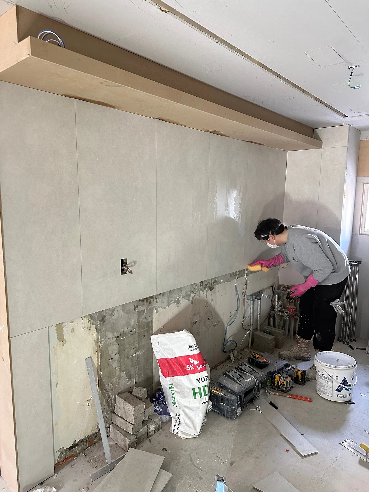 목공이 끝나면 이제 타일팀이 들어올 차례다.