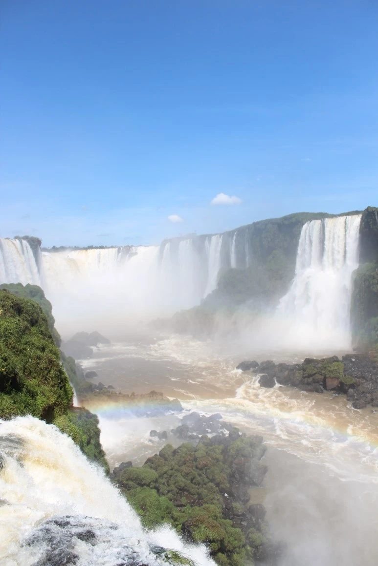아이가 계속 유모차에 앉아있고 가방을 뒤에 걸어놓은 상태로 남편이 유모차를 밀고 있었다. 전망대에 사람이 많아서 유모차를 끌고 그곳까지 갈 수 없어서 남편과 교대로 전망대에 다녀오기로 하고 나 먼저 갔다. 전망대에서 바라본 이과수 폭포의 어마어마한 규모와 아름다움에 매료되어 사진을 찍고 있는데 그 어마어마한 폭포 앞에 길게 드리운 무지개를 발견했다. 아이에게 이 무지개를 빨리 보여주고 싶어서 유모차에 가서 아이를 안아 올리며 무지개 보여주고 오겠다고 했다. (그때 남편에게 가방을 들고 있으라고 했어야 했는데) 남편은 평소처럼 아이를 들어 올리면 가방 무게 때문에 유모차가 뒤로 쓰러지니까 가방을 앞으로 돌려놓았다.