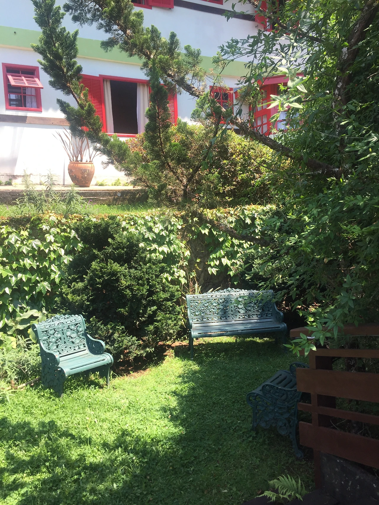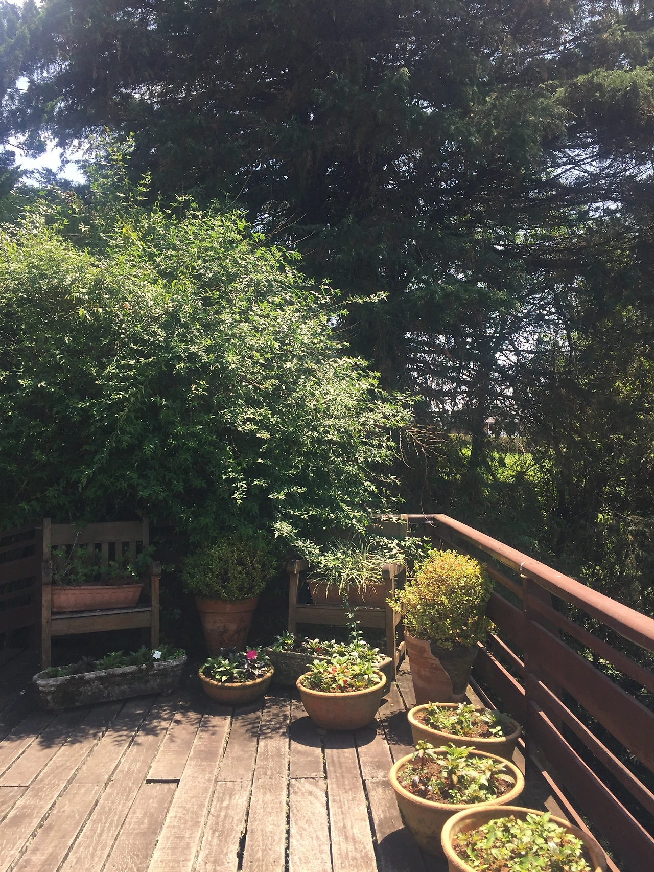 초록 초록한 경치가 한눈에 펼쳐지는 테라스의 벤치는 아침부터 햇볕을 받아 따끈했다.
