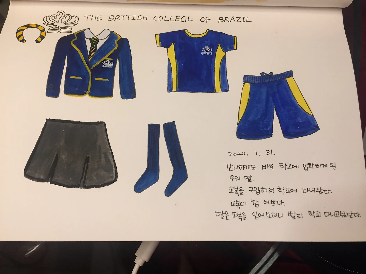아이의 교복을 보며 나의 커다란 교복을 떠올리다 com 그림일기