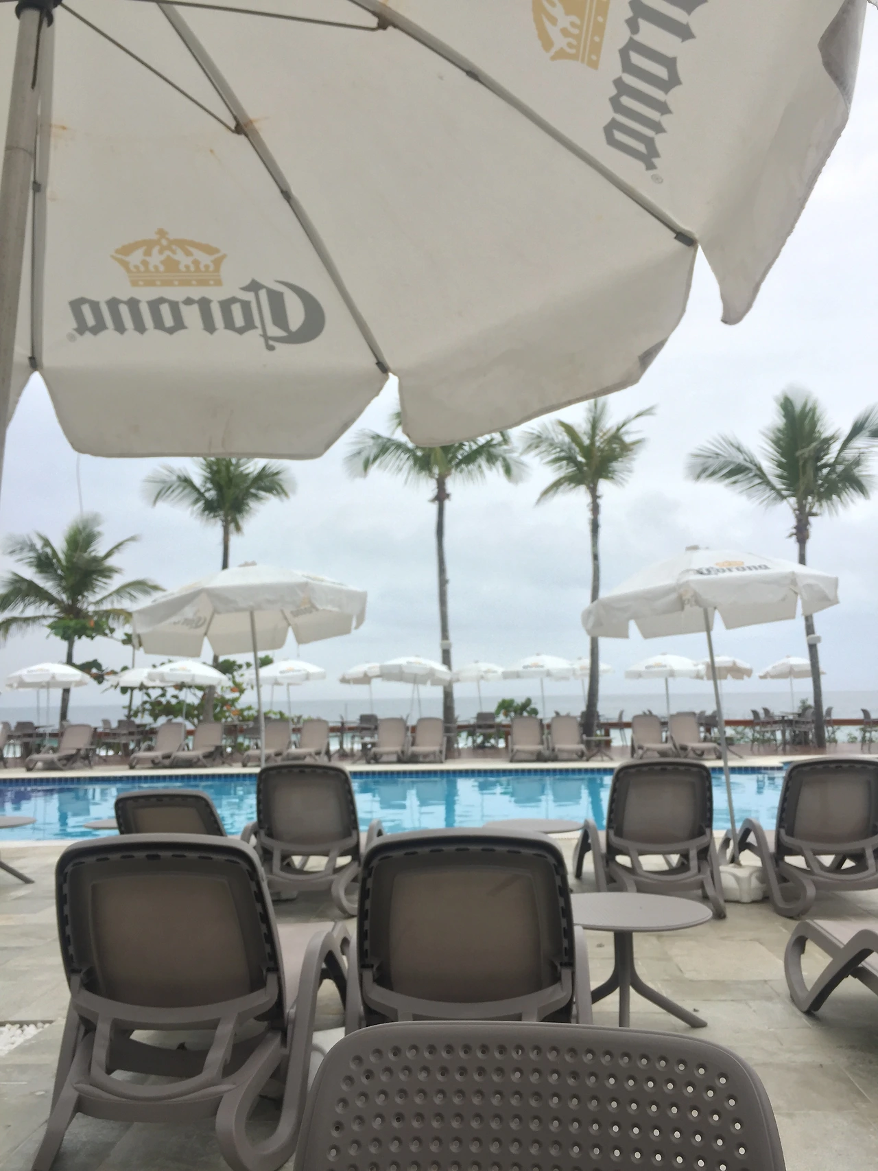 수영장 옆 테이블에 앉아 바다를 바라볼 수 있는 곳,