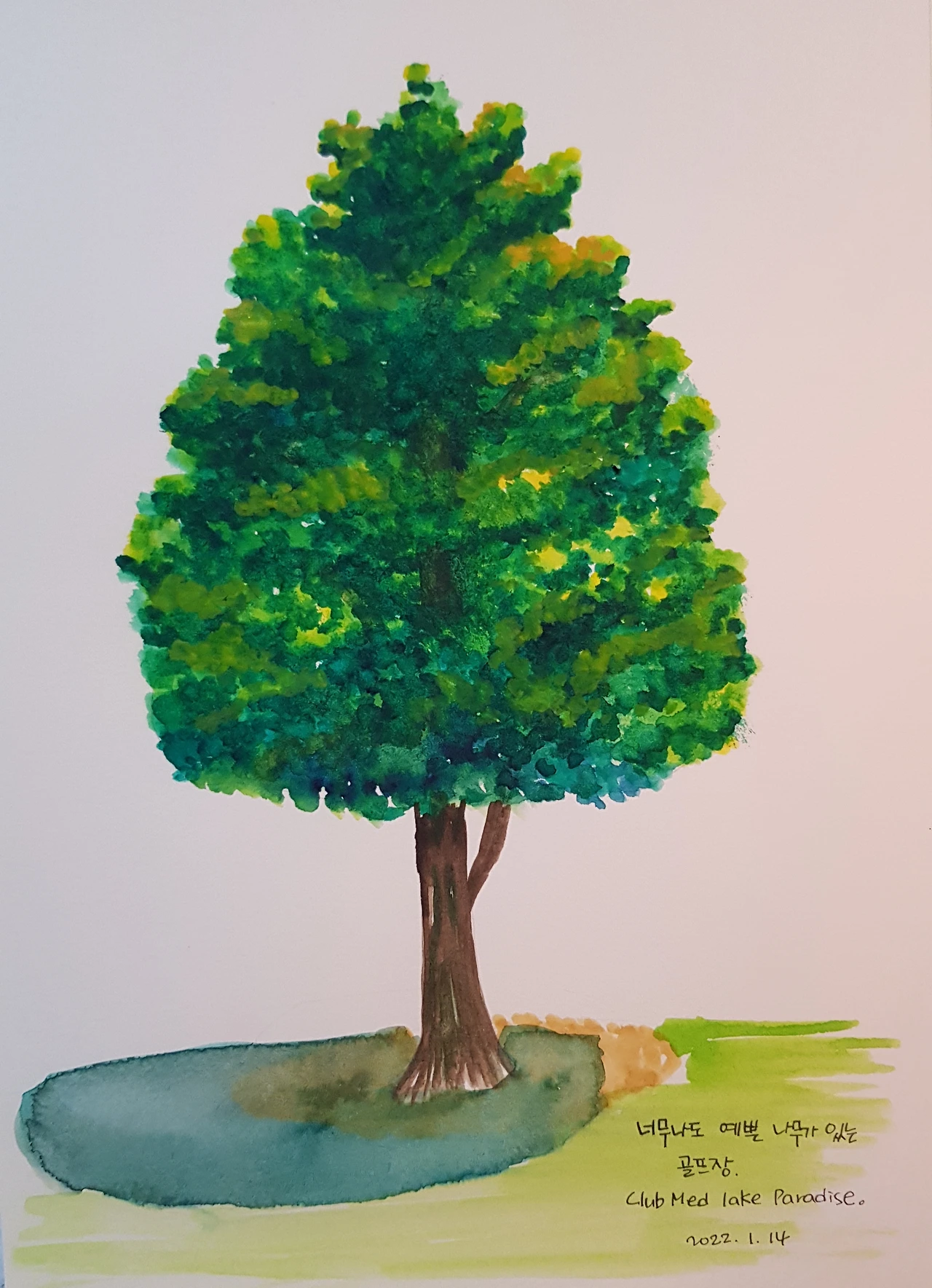 #수채화 나무 그리기#독학 수채화#골프장 나무#딸 그림