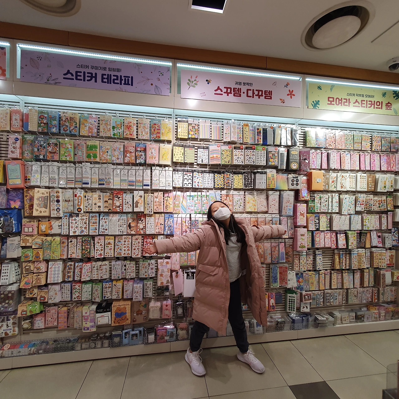 마스크를 쓰고서도 스티커 사진을 찍는 열정!