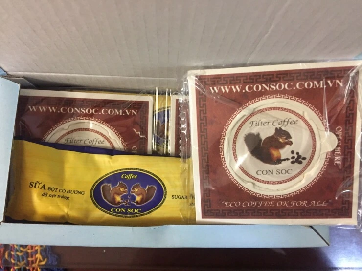 다람쥐가 그려져 있는 콘삭(베트남어로 다람쥐) 커피는 헤이즐넛 향이 나는 그냥 커피로,