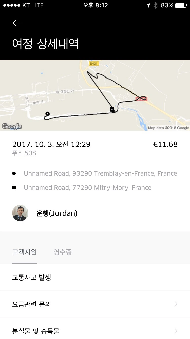 엥? 하고 보니 사정이 생겨서 다른 차를 보낸다는 메세지. 뭥미~