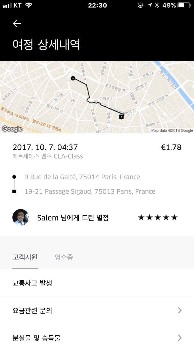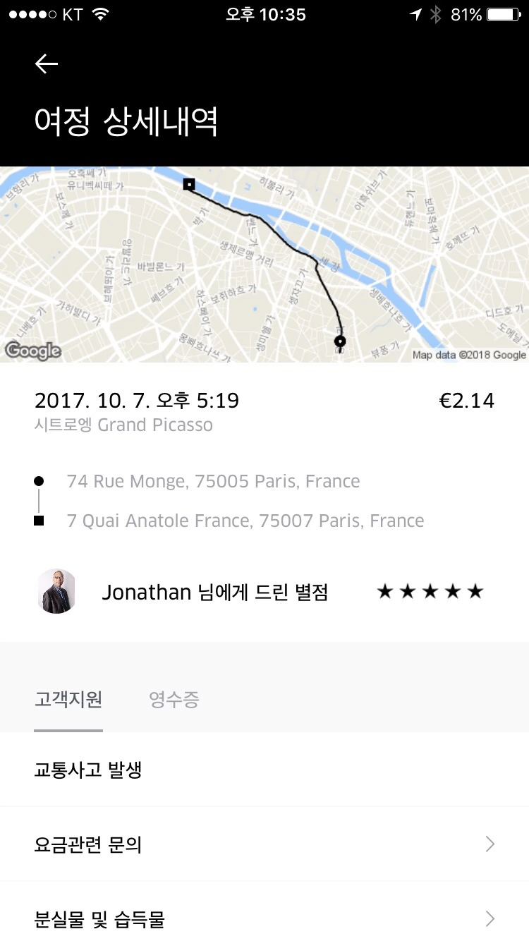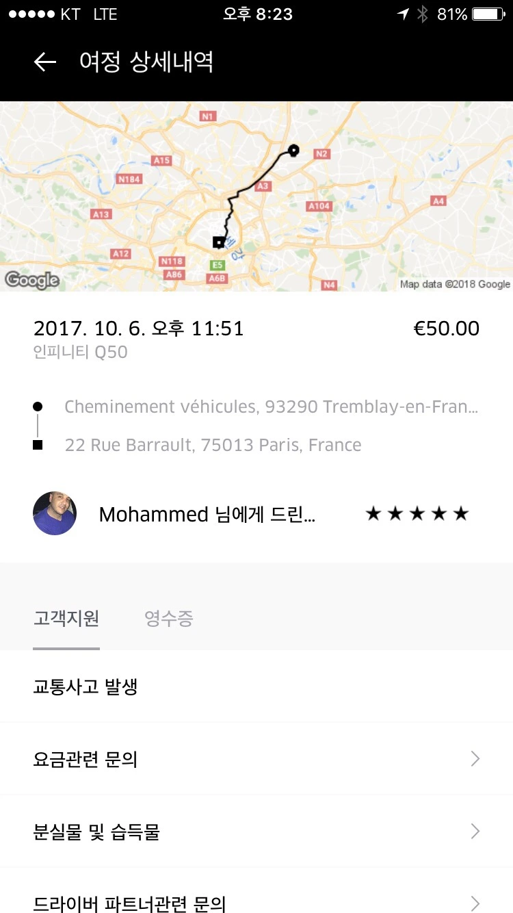 프랑스의 경우, 차가 막혀도 처음 제시 금액 그대로 받는다.
