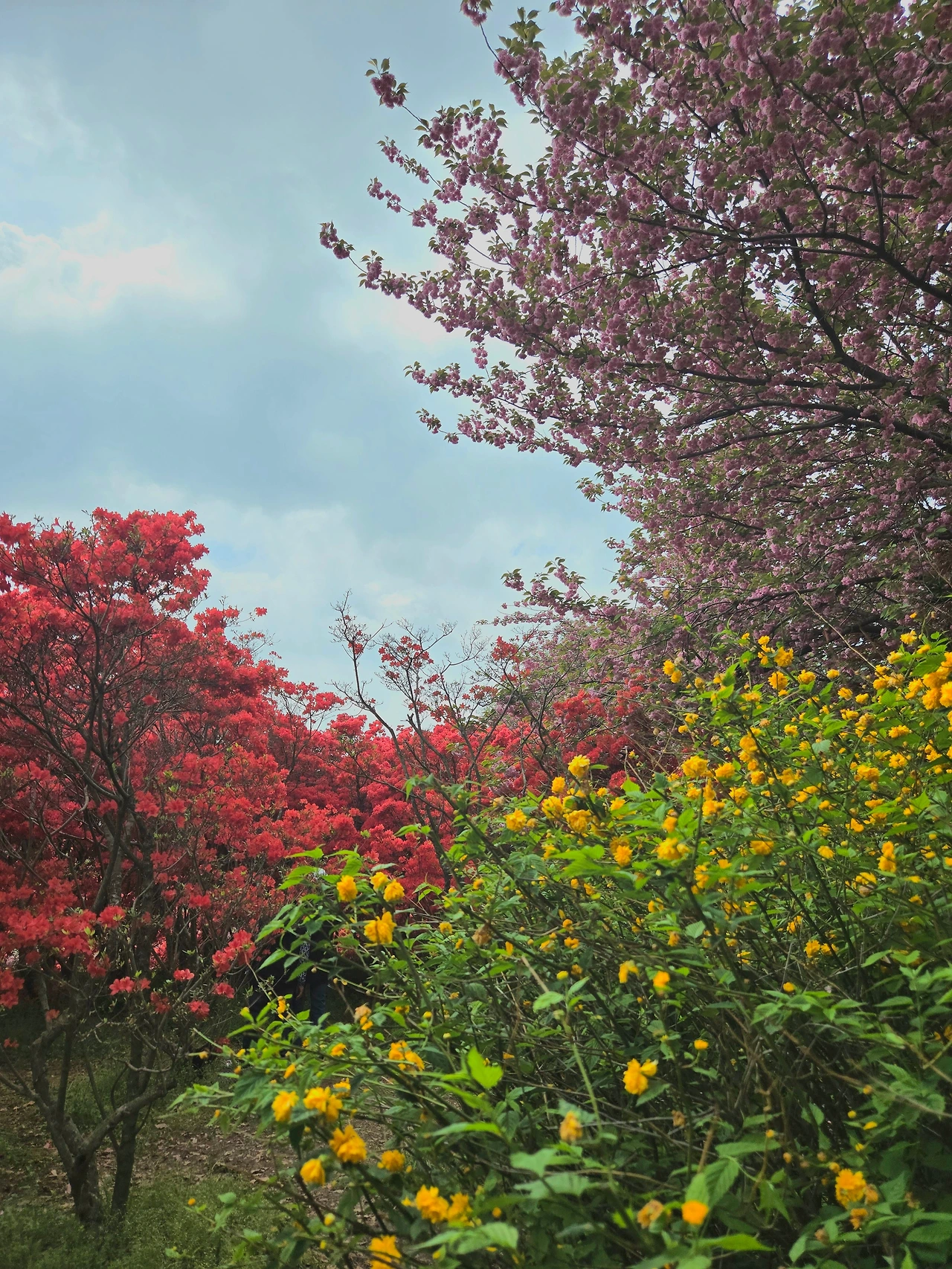 겹벚꽃 명소는 매~~~년 오는데 남편이랑 둘이 오니까 더 좋았다. 물론 눈앞의 계단 보고 아찔하긴 했지만 (이미 우리는 레슨+도청 방문으로 5000보 정도 걸은 상태였다.) 저려오는 허벅지와 엉덩이를 부여잡고 무사히 등반 완료. 이미 절정은 지났지만, 그래서 바닥까지 분홍빛으로 물든 겹벚꽃 터널을 걸었다.