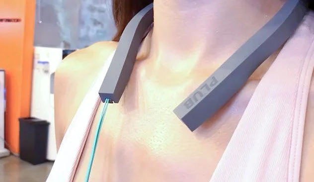 기다란 선들이 감당이 안 된다면 PLUB의 넥밴드를 사용하면 된다. 목에 부담이 가지 않은 선에서 만들어져 10g의 가벼운 무게를 넥밴드 형태로 하고 다니면 부담스럽지 않은 무게가 된다. 복잡한 지하철이나 거리에서 선의 자유로움을 느껴보자.