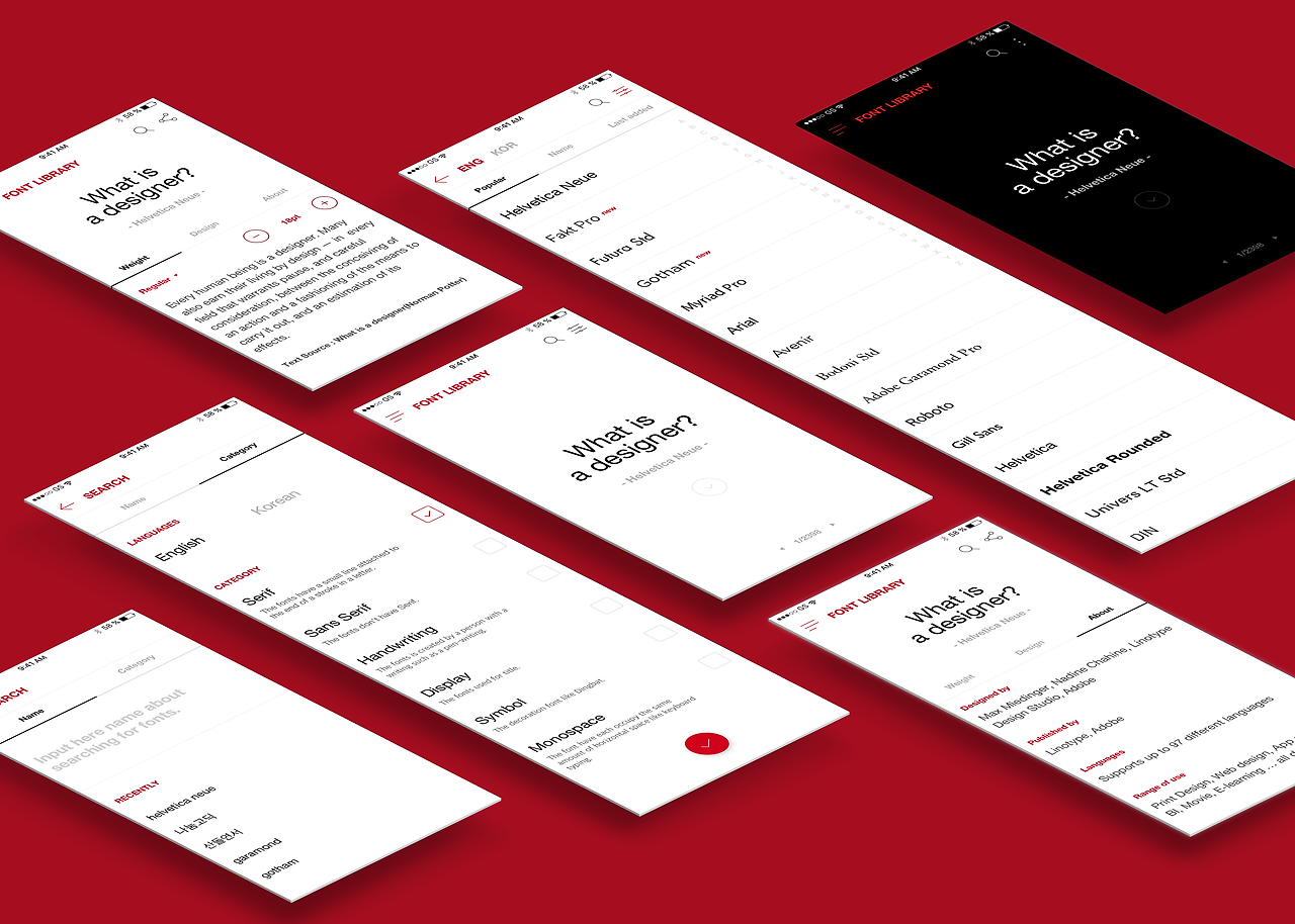작년 여름 즈음부터 개인작업으로 시작했던 폰트 라이브러리 (일명 '폰트러리')의 모바일 버전 프로토타입을 드디어 완성했다. 기념하여 그에 대한 제작기를 남겨볼까 한다.