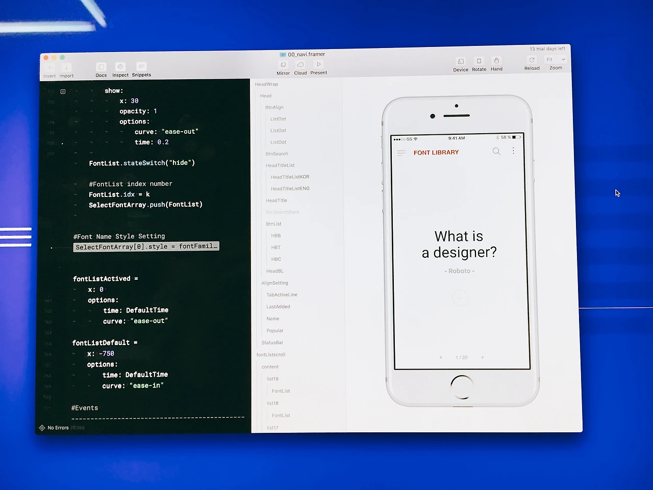 framer는 코드를 베이스로 하고 있어서 개인적인 생각으론 전체 플로우가 아닌 일부분을 프로토타입으로 만들 때 유용하다는 생각이다. 폰트 라이브러리의 프로토타입을 만들면서도 다시 한번 느끼게 됐다.
