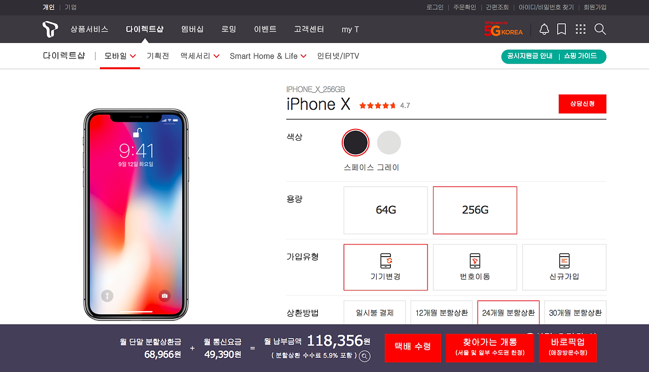 항상 대리점을 통해서 예약하고 개통하는 절차를 밟아왔지만 이번에는 좀 귀찮기도 하고 대리점 방문할 때마다 뭘 더 하면 이만큼 할인이 더 된다는 둥 무슨 서비스와 결합하면 더 할인이 된다는 식의 영업당하는 게 너무 피로해서 다이렉트샵을 이용해 보기로 했다.