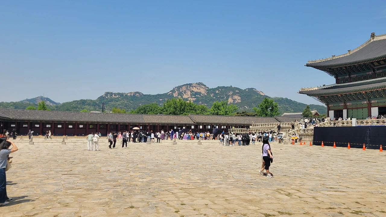 오전 10시 30분에 경복궁 입구에서 만나기로 해서 늦지 않게 가려고 서둘렀는데 시간이 간당간당했다. 그런데 막상 경복궁 근처에 도착했을 때 입이 쩍 벌어졌다. 관광객들이 시장 북새통처럼 차고 넘쳤던 것이다. 외국인들부터 시작해서 학교에서 수학여행을 왔는지 학생들도 많았고 들어가는 입구에는 긴 행렬이 뱀꼬리처럼 늘어져 있었다. 코로나로 중단되었던 관광이 재개되면서 동남아에서 여행객들이 밀려드는 모양이었다.